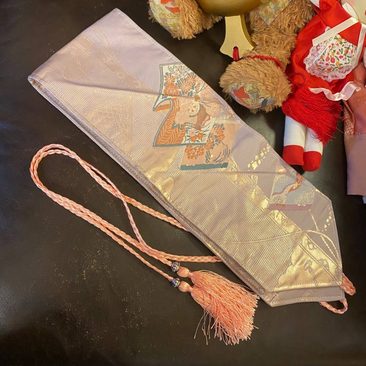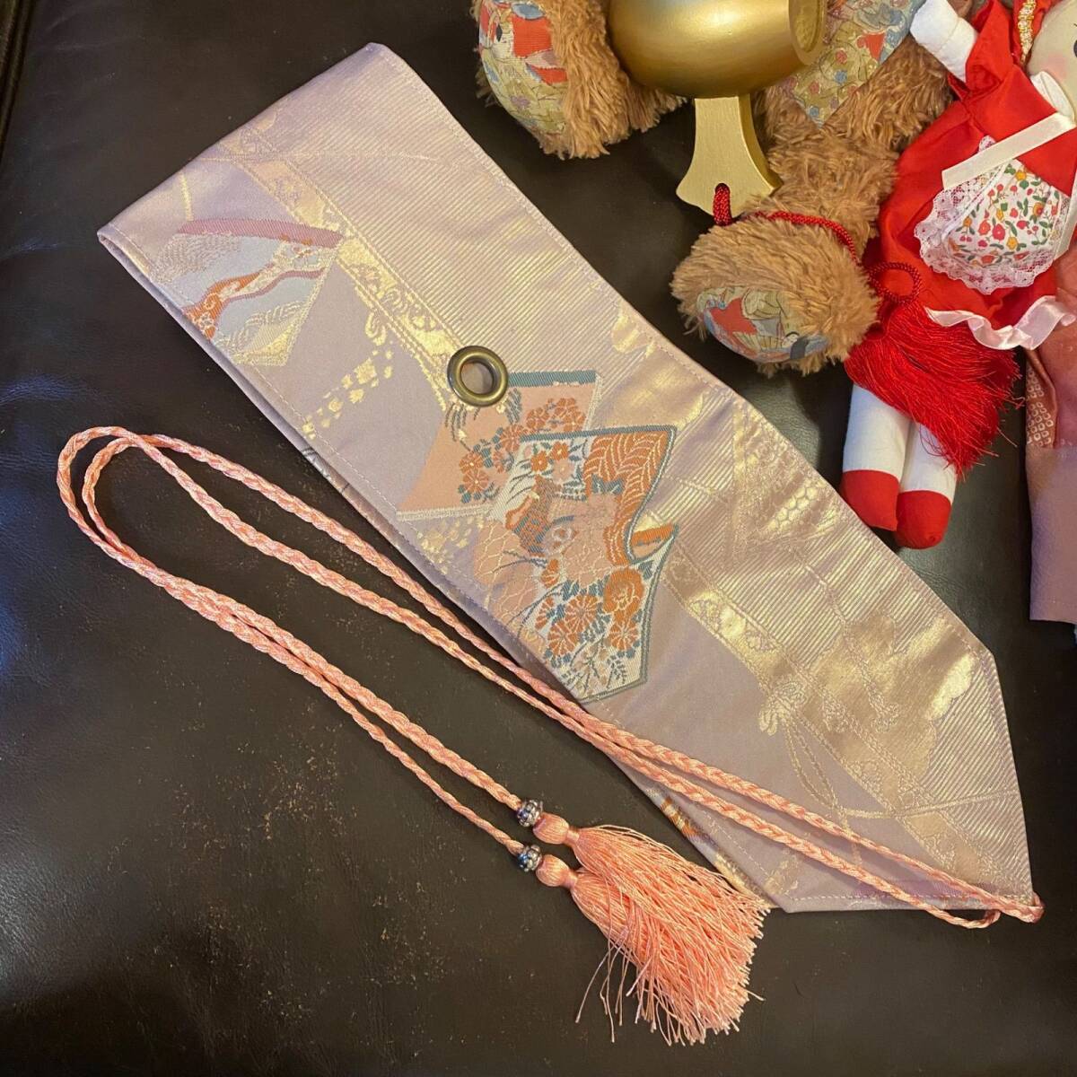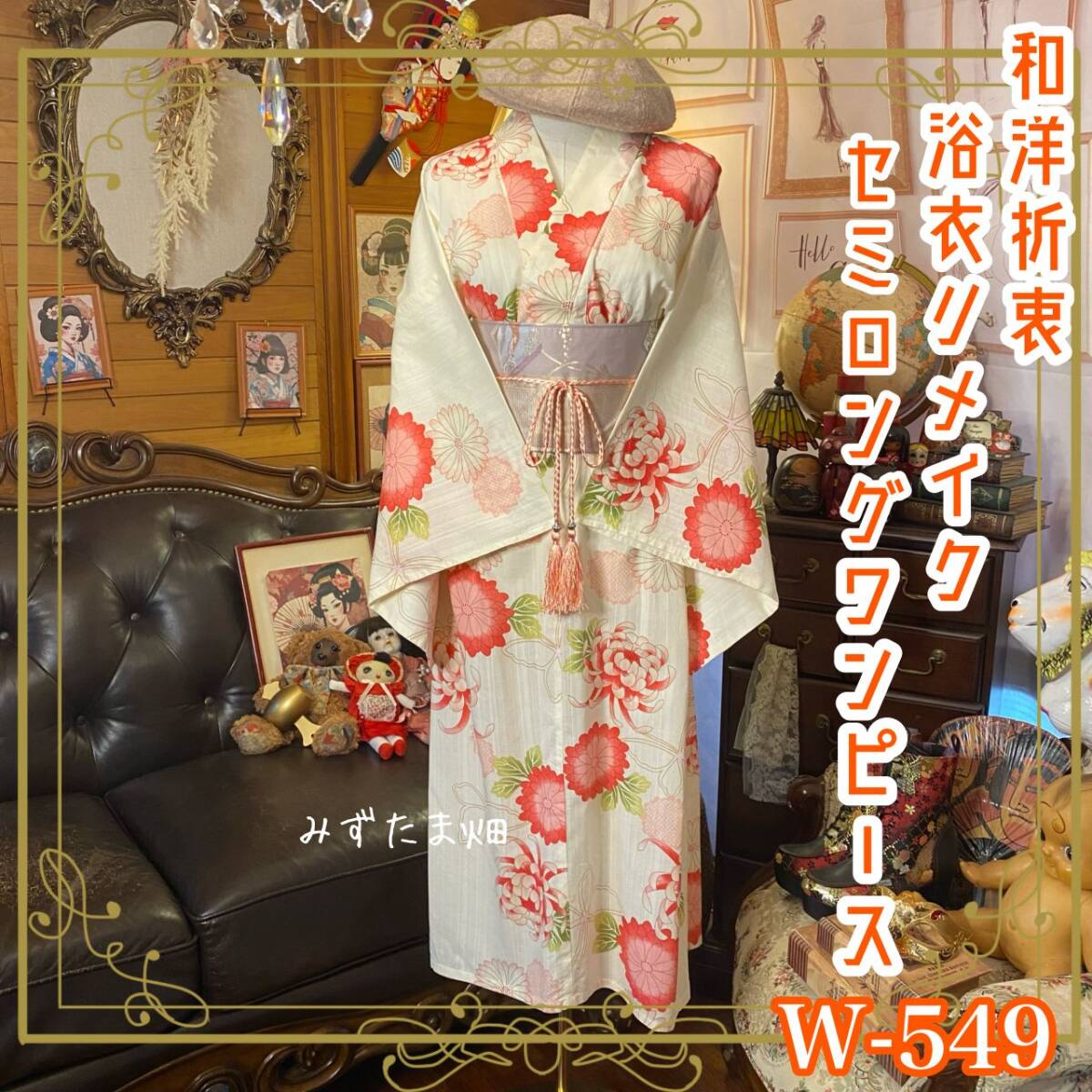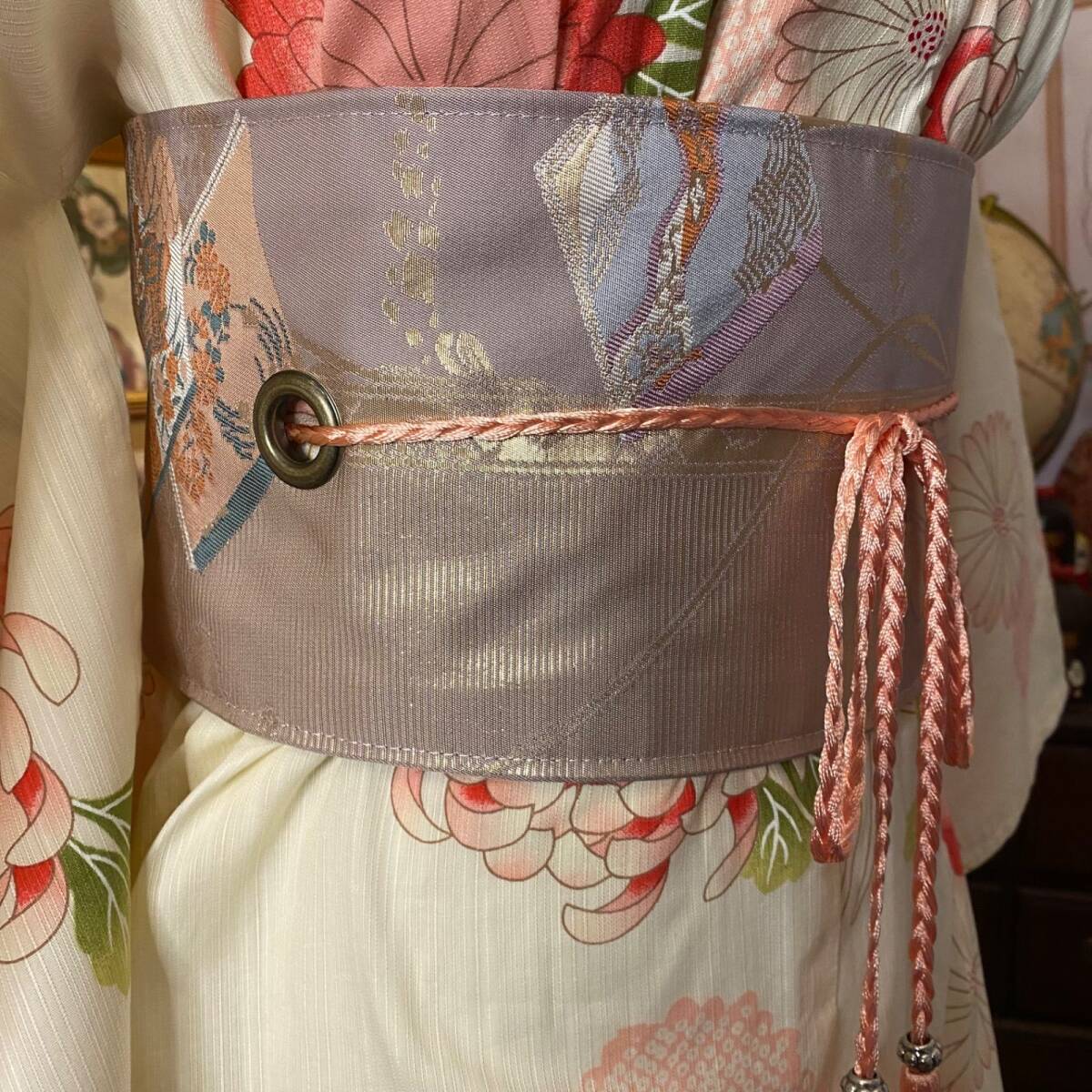 【浴衣リメイク セミロング ワンピース ドレス 名古屋帯サッシュベルト 和洋折衷 レトロ 古着 ハンドメイド 「桃の光に咲く、やわらかな願い。」 W-549】