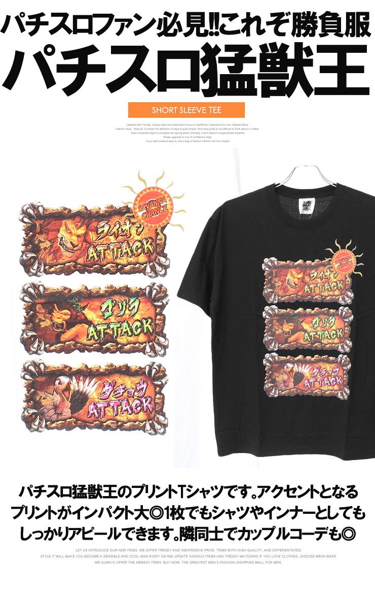 商品説明 | パチスロ猛獣王のプリントTシャツです。 |
