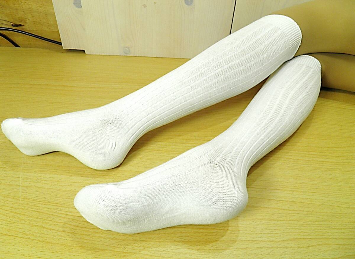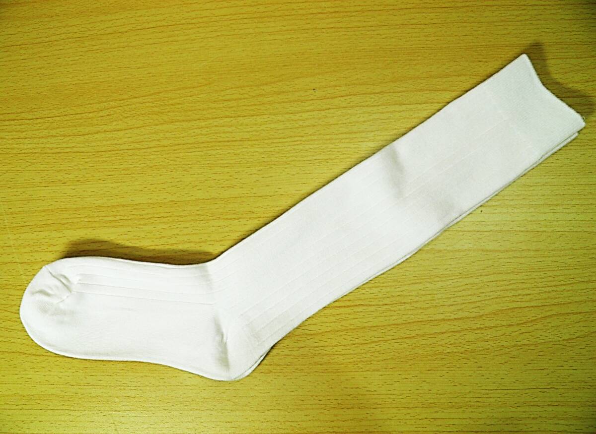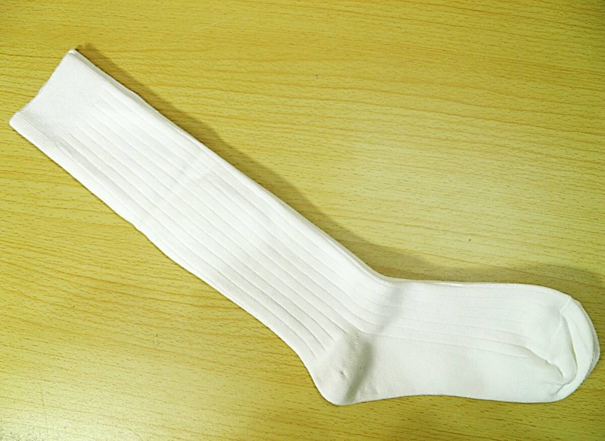 【レッグウェア★未使用品】太リブ◆6×2リブ◆白リブ ハイソックス◆ひざ下丈◆スクールソックス◆コスプレ◆23-25cm◆32cm丈◆ST