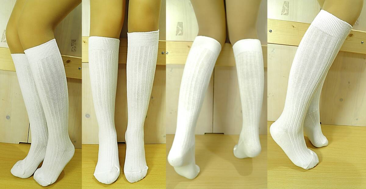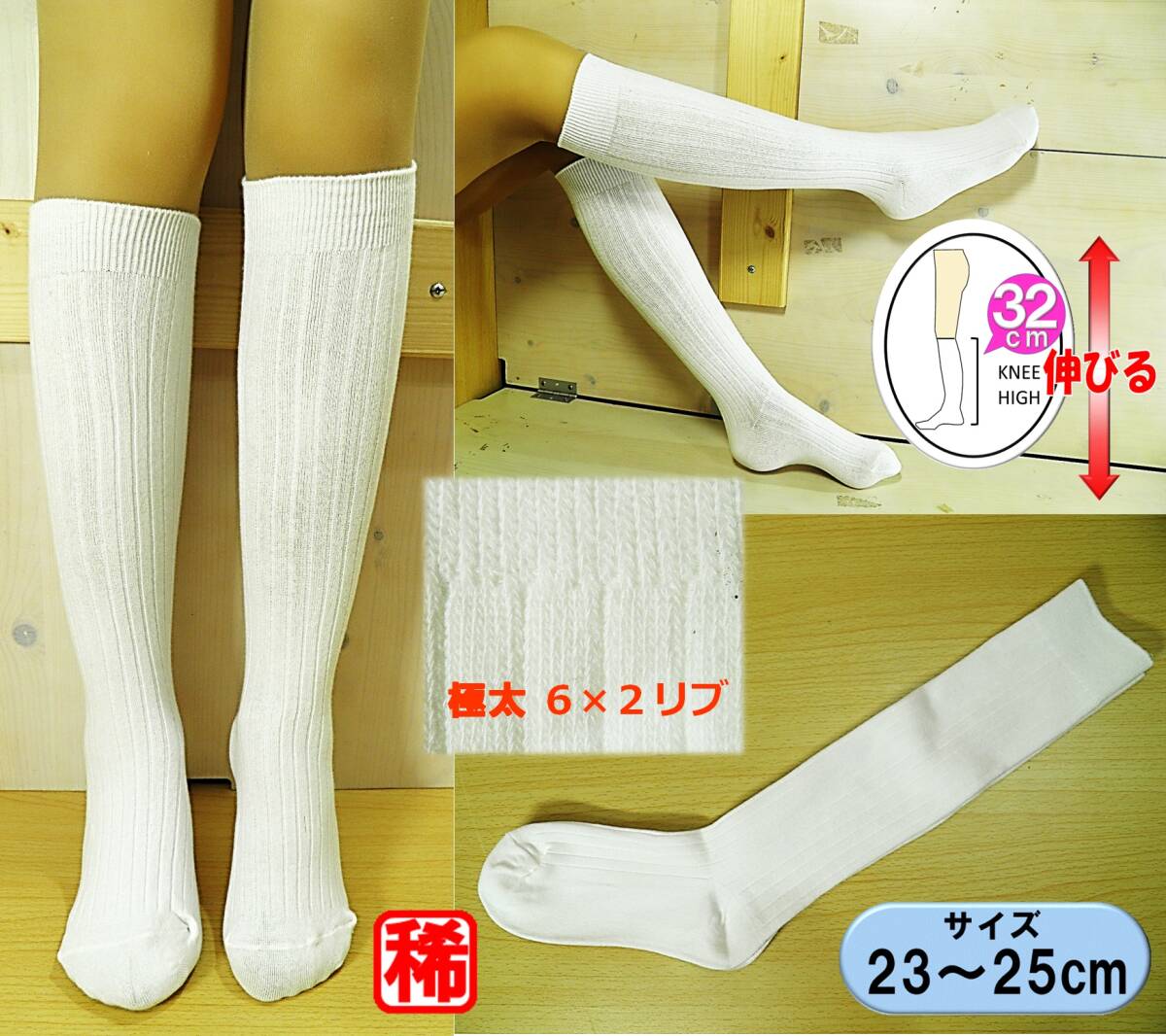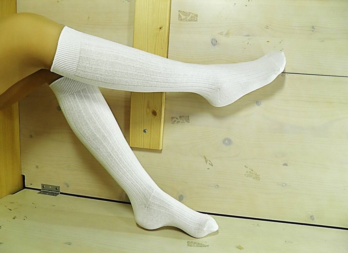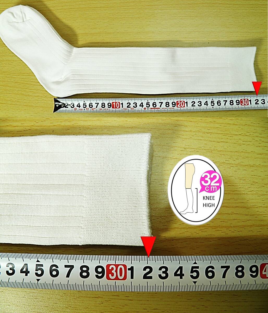 【レッグウェア★未使用品】太リブ◆6×2リブ◆白リブ ハイソックス◆ひざ下丈◆スクールソックス◆コスプレ◆23-25cm◆32cm丈◆ST