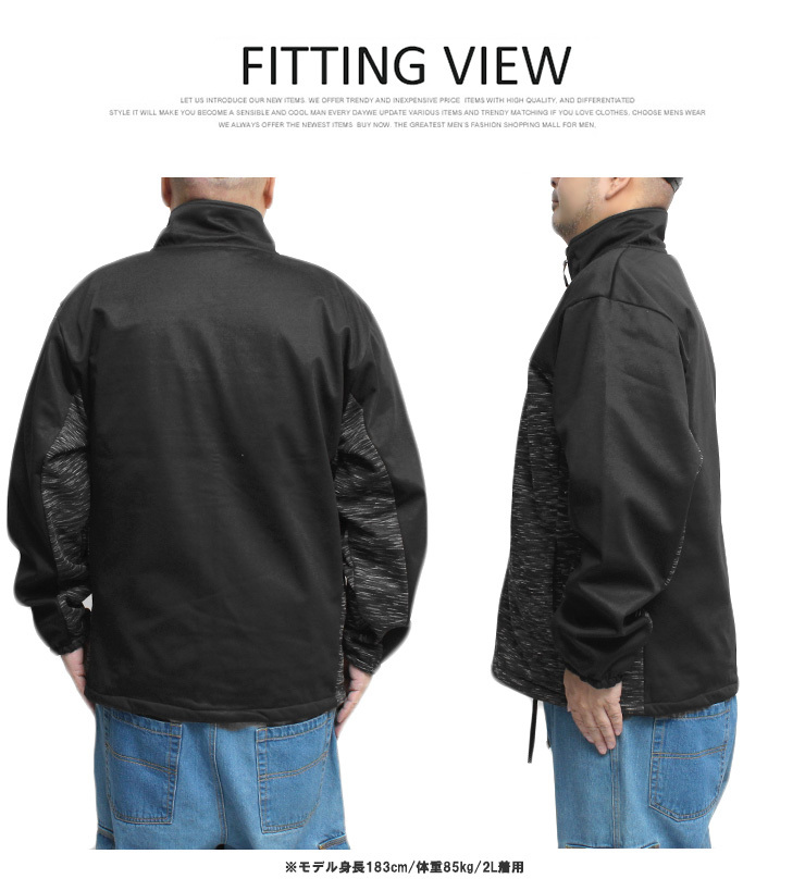 商品名 | 【新品】 4L グレー×ブラック パーカー メンズ 大きいサイズ 防風 フリース 裏起毛 ストレッチ ジップアップ ブルゾン ジャケット |