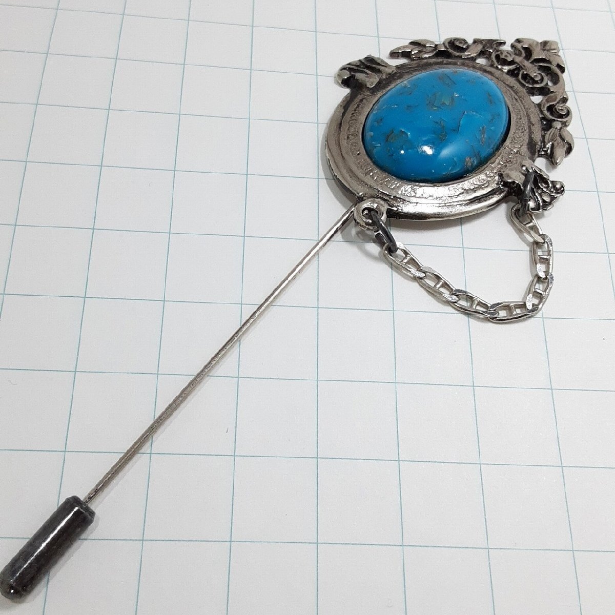 送料無料)ビンテージ☆ターコイズブルー 七宝仕上げ☆アンティーク ブローチ A29440