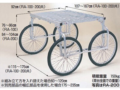 (個人宅配送 代引OK) 収穫台車 ハラックス 楽太郎 RA-200 作業台車 運搬車 150kg積載 キャベツ ブロッコリー 葉物野菜 (エアタイヤ)