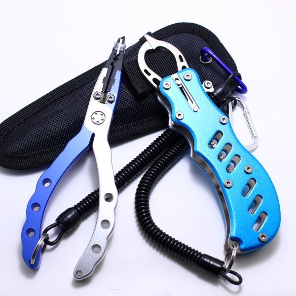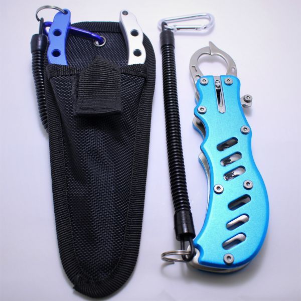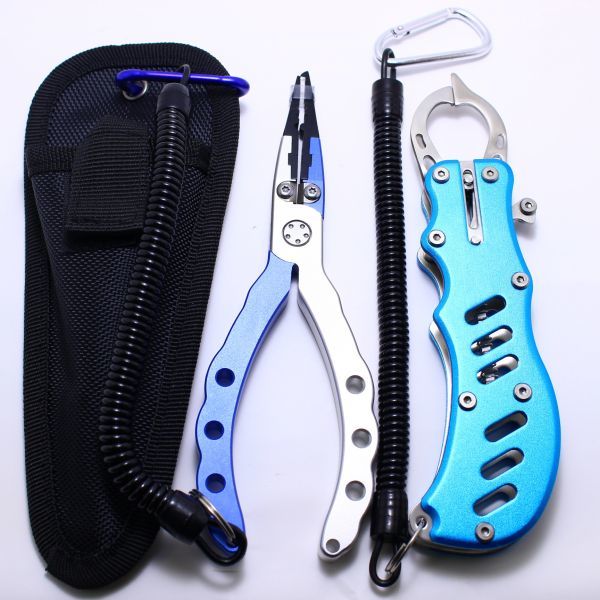 【送料無料】コンパクトフィッシュグリップ スリムタイプフィッシングプライヤーセット ブルー