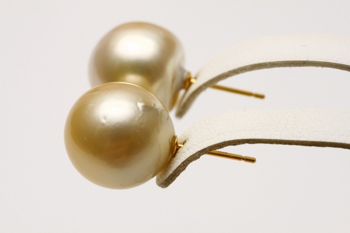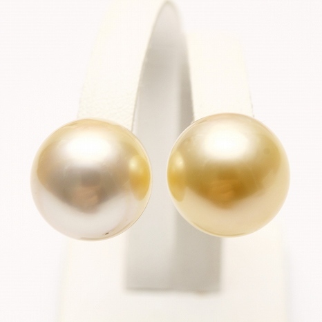 | 南洋白蝶真珠ゴールデンパールピアスです。 左右でほんのりトーンの異なる染色加工がされていないナチュラルゴールドカラーで エレガントな金色の輝きを放っています。 迫力のある13mmの大粒サイズで,周りの視線を集めること間違いなしです。 シンプルなデザインに仕上がっていますので, 様々なお洋服に合わせてお楽しみ下さい。 ※金具のご変更可能です。 | |