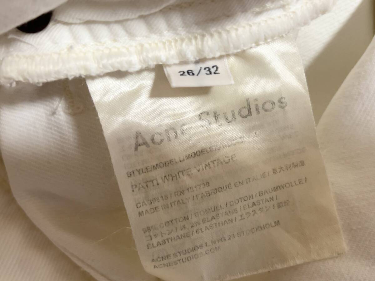 サイズは26/32で、平置きでウエスト34, ヒップ45, 股上26, 股下62, 裾幅15.5です。