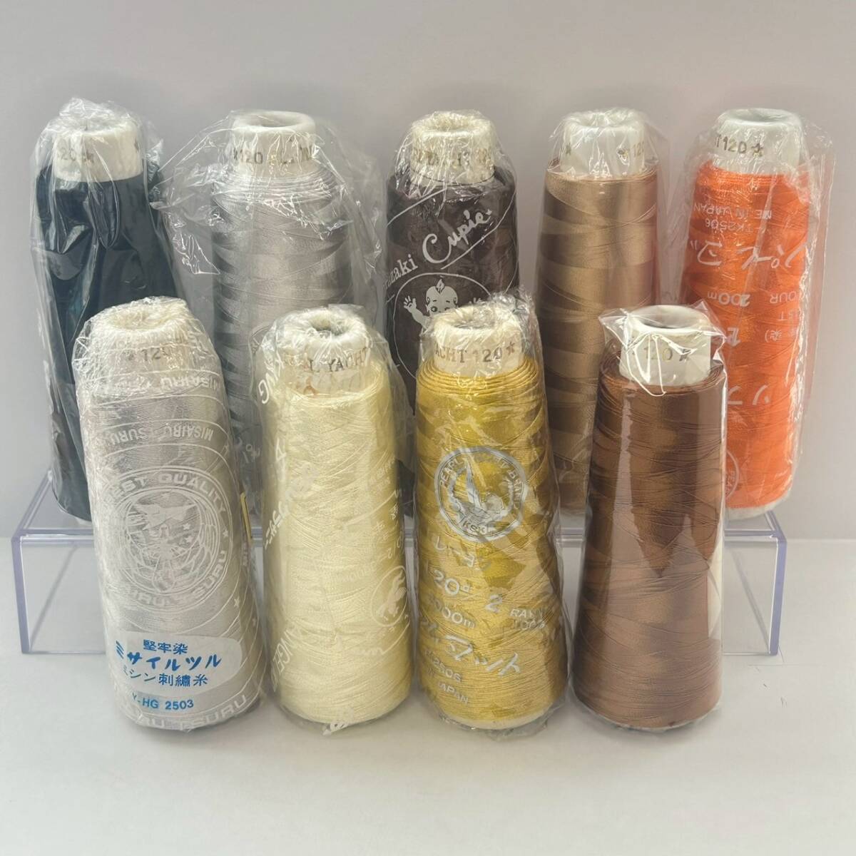 【500円にて出品!/ 1本56円以下】 刺繍機ミシン糸 9本/評価A~B品 パールヨット キング ミサイルツル ジャノメ タジマ EM 18