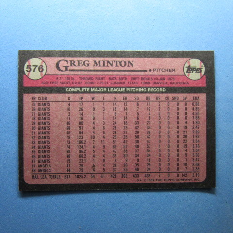 MLB 1989 Topps #576 Greg Minton
