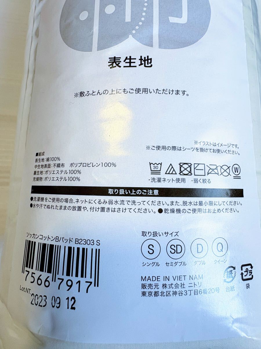 | 新品未開封★ニトリ コットン ベッドパッド シングル | ||