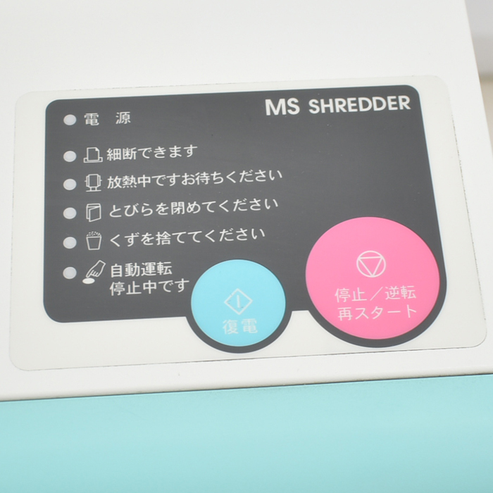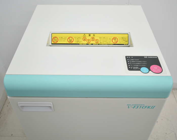| ■備考 明光商会 MSシュレッダー V-F31CFKII 2018年製 幅500 明光商会のMSシュレッダーです。 内蔵ファンが回転して細断くずを均等に押しならして大量のくずを収容するファンプレス機能付き。くずならしの手間とくずこぼれを軽減します。 ●ワンカットクロス 軸にワンカットカッターを組み込んで一対とし、縦切り横切りを一度に行うカット方式。細断くずはミリ単位でチップ状に細断され、収容能力を高めます。 細断サイズ 約 2.5×30.0mm ※扉部分、少々日焼けしているように見えます。 ※アートセッティングデリバリー(家財おまかせ便)でのお届けとなります。 ※送料はお見積りとなります。 クリーニングとメンテナンスをしっかり行ってお届けします。 この商品の程度は中古品として美品といえます。 多少の擦れや傷はあるものの気になる程ではないでしょう。 御使用端末の環境により多少画像の表示色と実物の色に差違が生じる場合がございますのでご了承ください。 | |