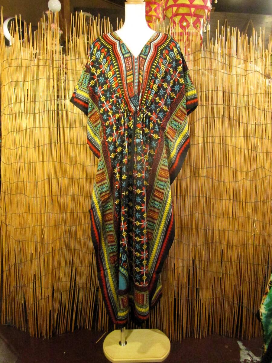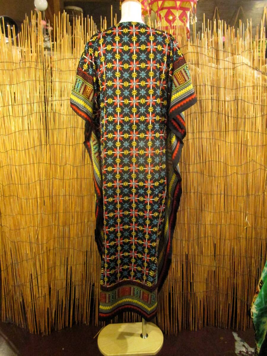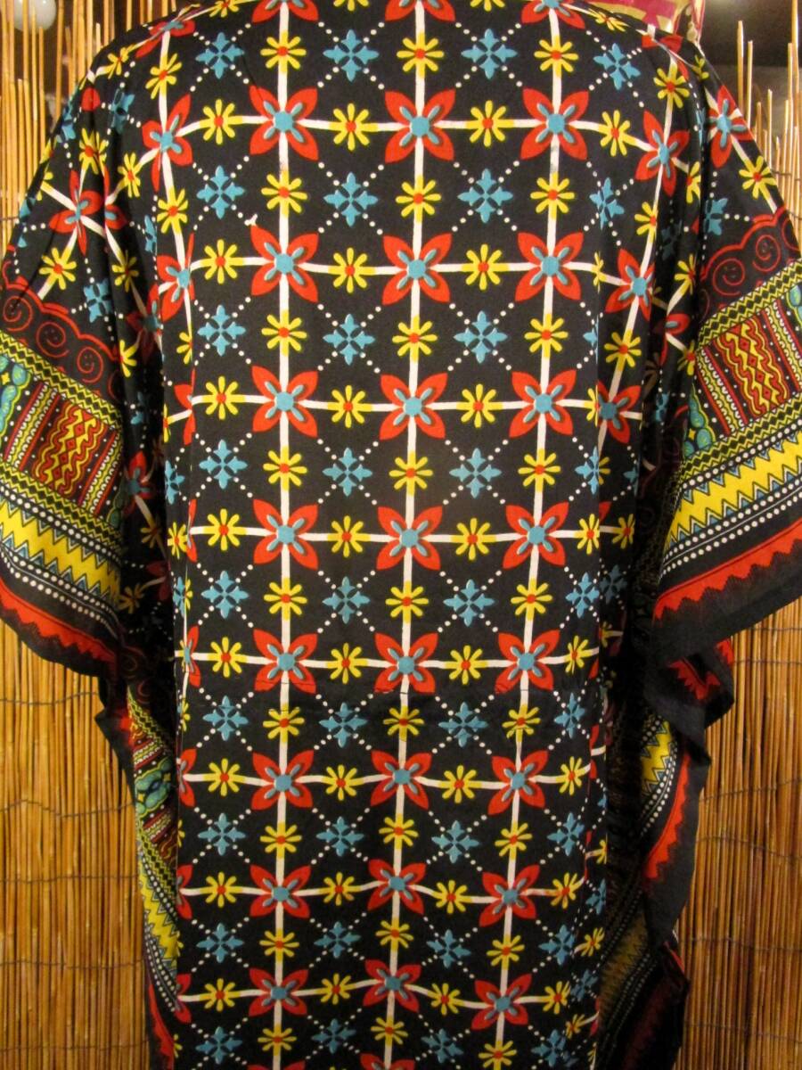 ⑭新品*薄手ビスコース素材*ゆったりサイズ *アフリカンプリント*ガラベーヤ*ポンチョ風*マキシ丈*ワンピース*ベリーダンス