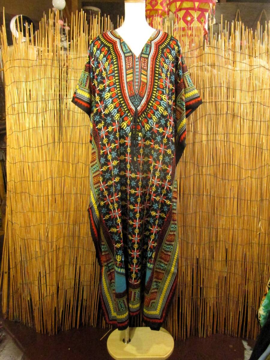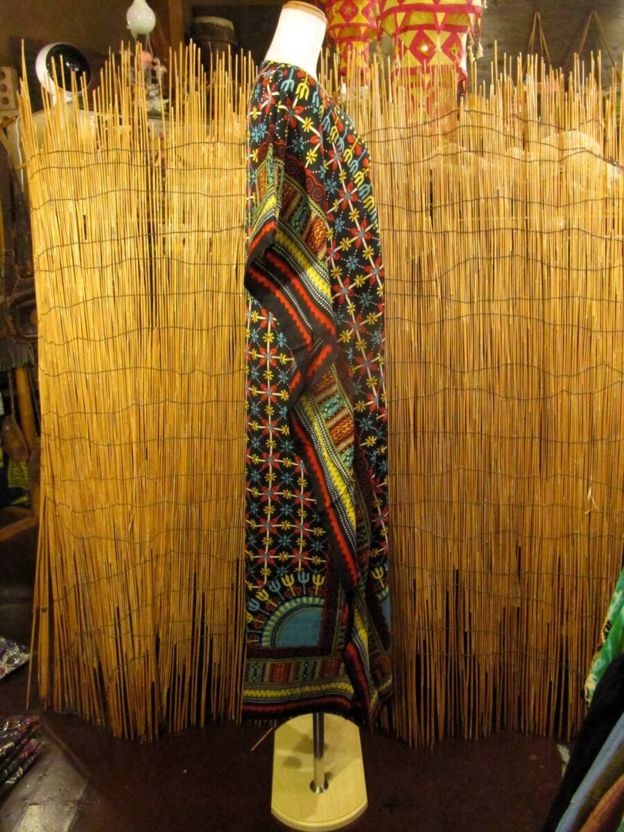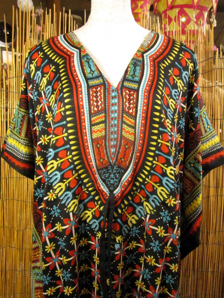 ⑭新品*薄手ビスコース素材*ゆったりサイズ *アフリカンプリント*ガラベーヤ*ポンチョ風*マキシ丈*ワンピース*ベリーダンス