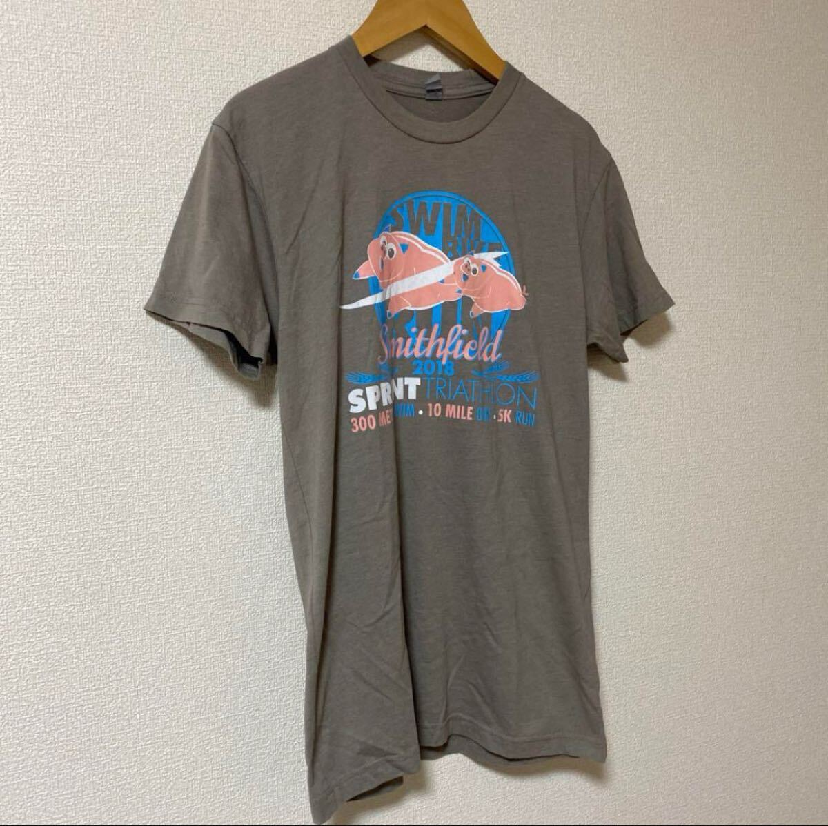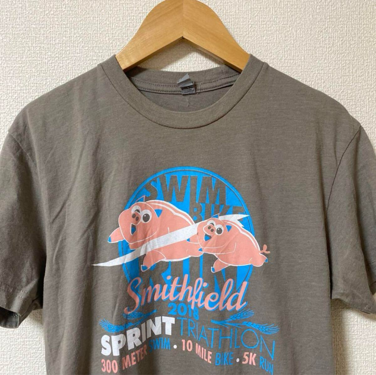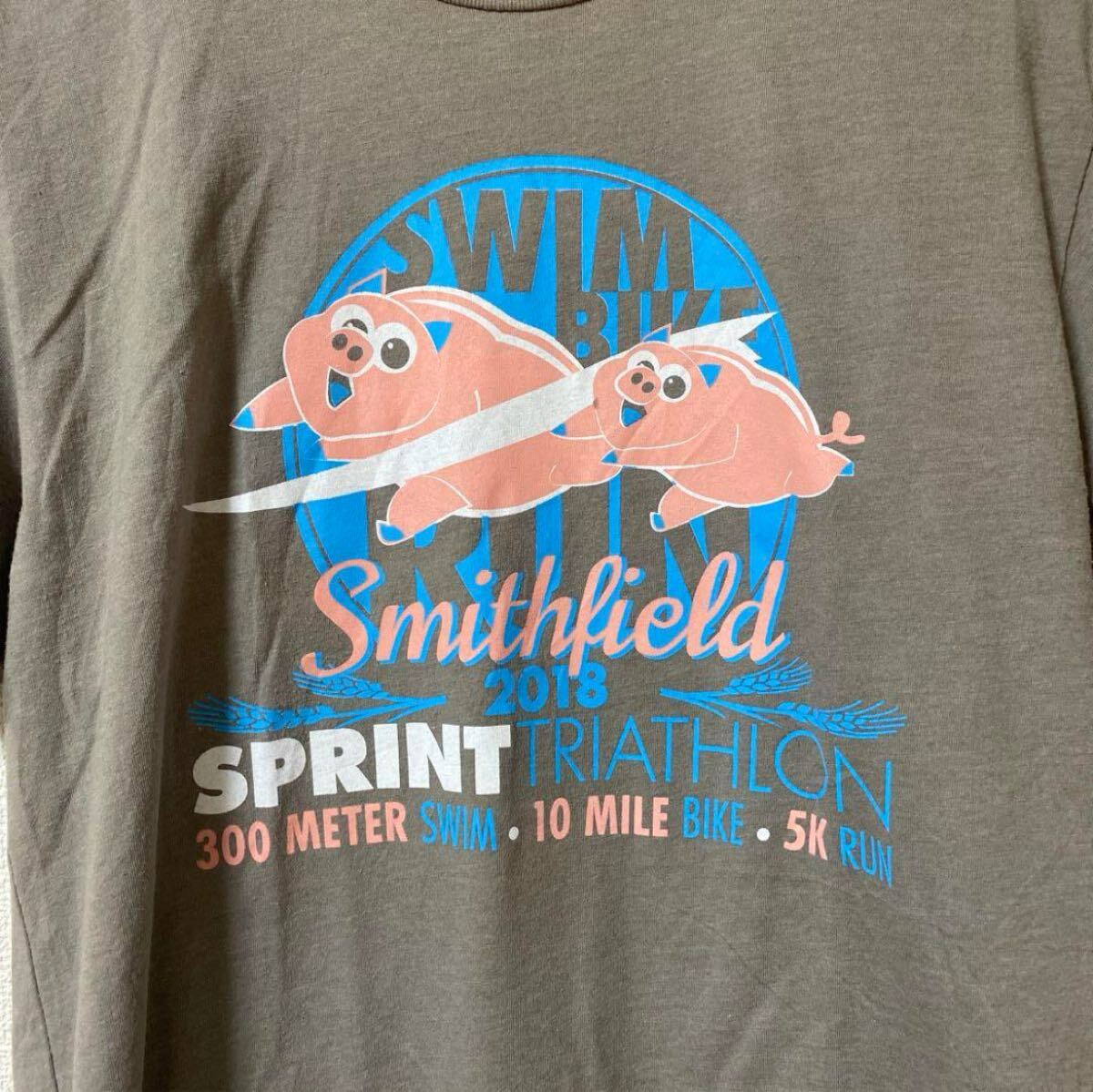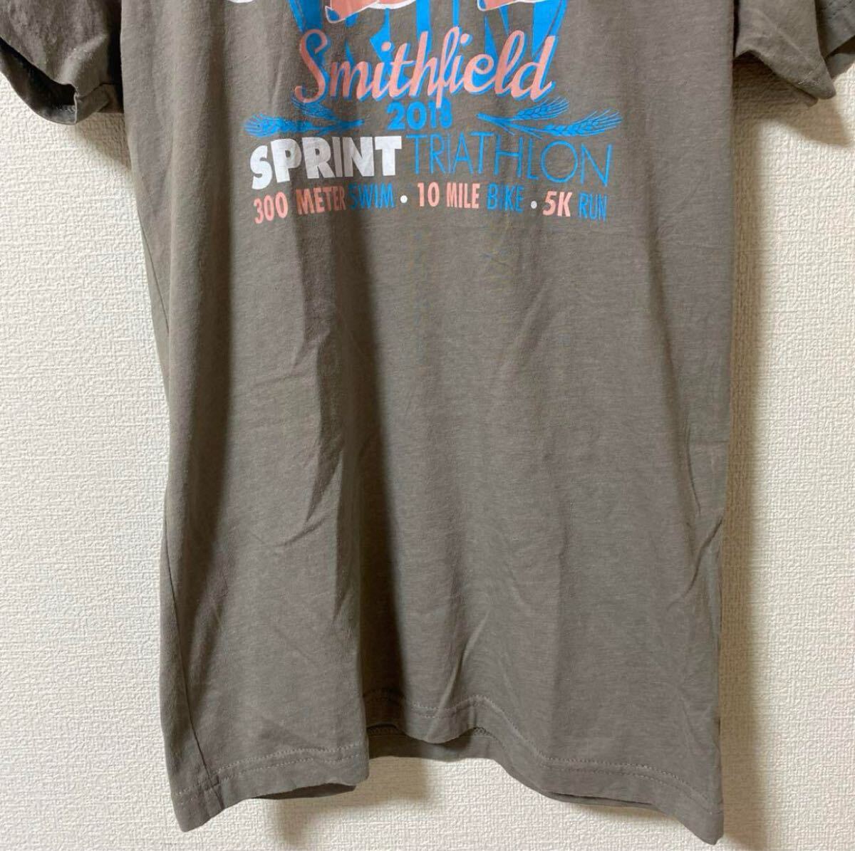Smithfield Sprint Triathlonのプリントが施されたグレーのカジュアルTシャツ。