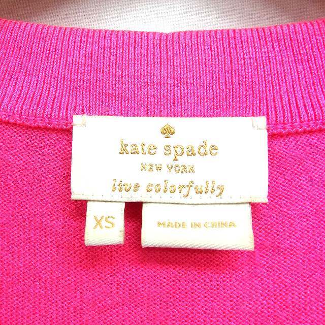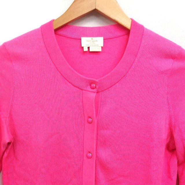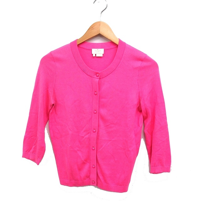 ケイトスペード KATE SPADE 国内正規品 シルク カーディガン 丸首 7分袖 カシミヤ混 XS ピンク /FT31 レディース