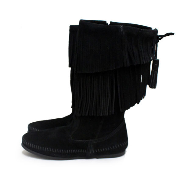 商品名 | MINNETONKA(ミネトンカ)Calf Hi 2-Layer Fringe(カーフハイ2レイヤーフリンジ)#1689 BLACK SUEDE レディース MT178-5(約22cm) |
