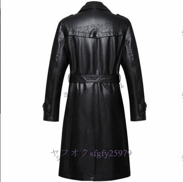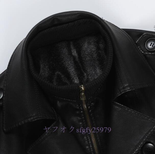 新品ライダース レザー ジャケット トレンチコート 革ジャン メンズ ロングコート 裏起毛 防寒 イタリア羊革 本革「M~5XL]