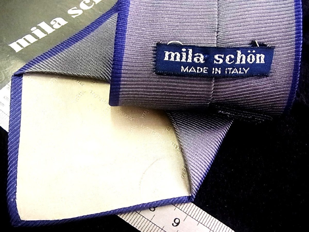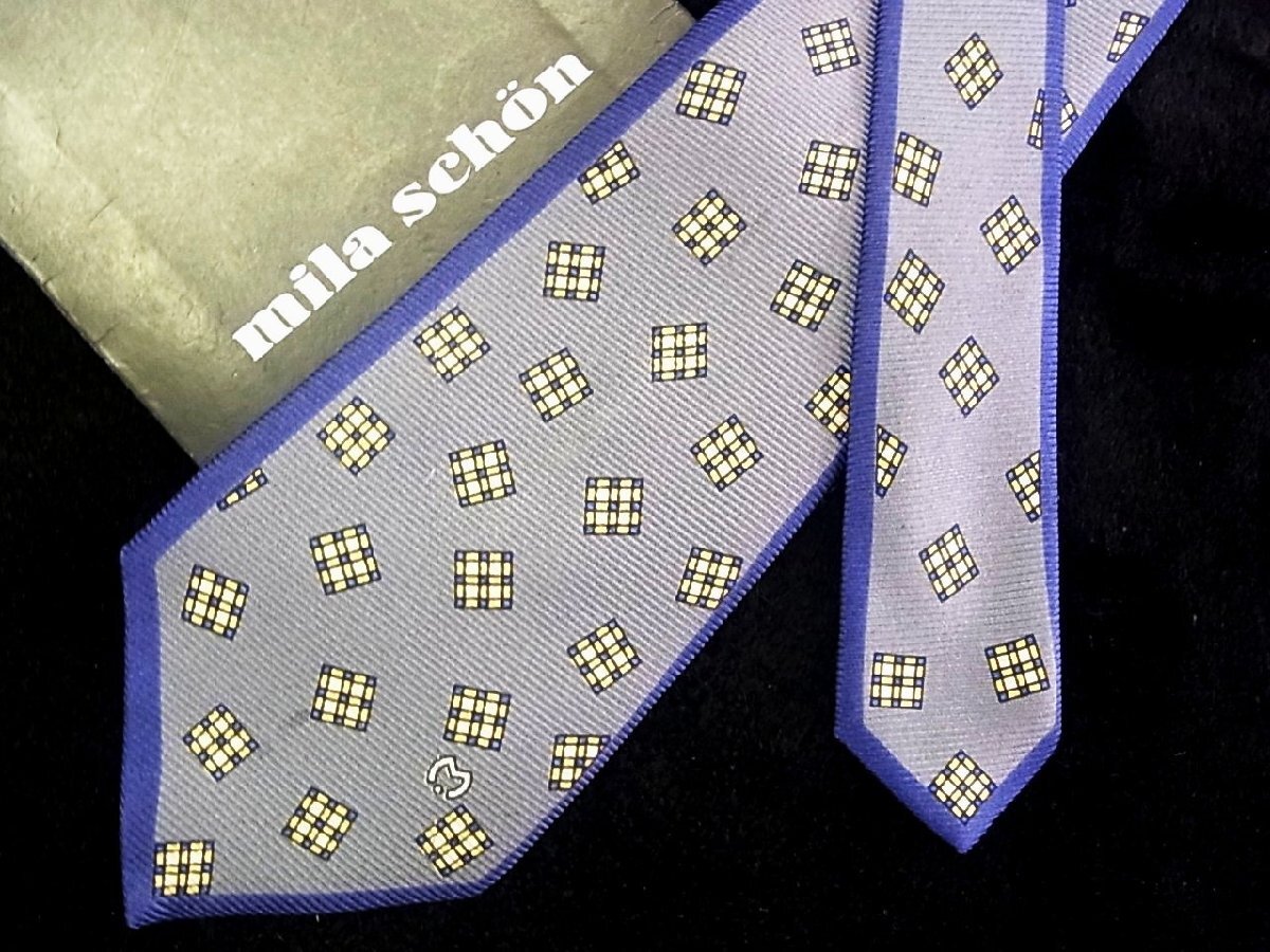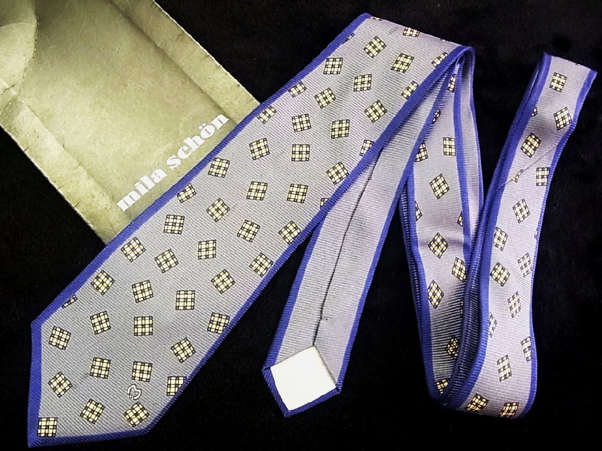 ♪今週の特売980円~♪2519♪状態並品【mila schon】ミラショーン【スクエア デザイン mロゴ 柄】ネクタイ♪