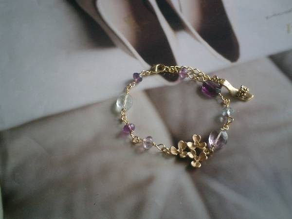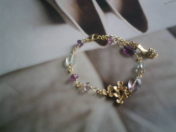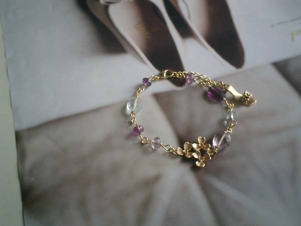 ロゼッタのお気に入り・・シリーズです♪荊姫の花冠・・繊細なフローライトのブレスレットです♪小花のメタルチャームを合わせて儚げな表情です♪5ミリのボタンカットや10ミリのオーバルカットのフローライトに15ミリ位の小花のメタルチャームを合わせました♪長さは23センチ位で調節自由です♪♪お揃いのネックレスも出品しています♪♪シンプルで飽きのこないいつまでも着けられるデザインを考えて作りました!ハンドメイドをご理解頂いてノークレーム、ノーリターンでお願いします