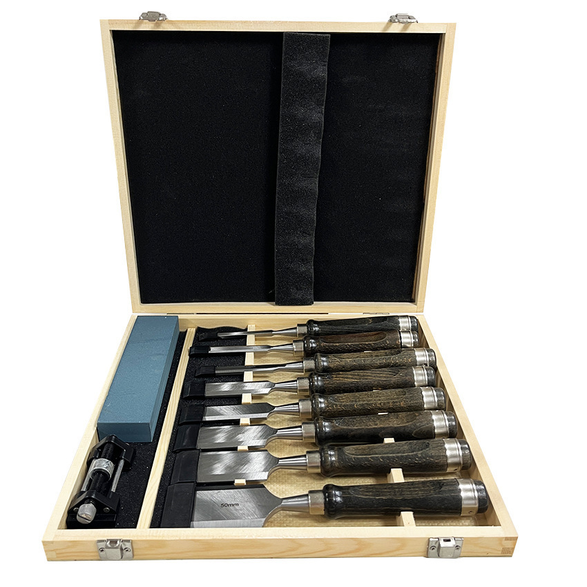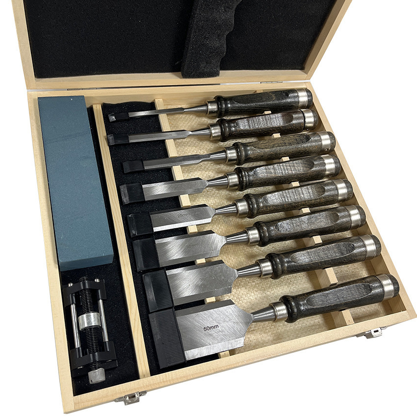高品質木工DIY用ノミツール ブラックウォールナット専門セットには両面砥石修正ストーンビットが含まれています 高耐久平ノミ 8PCS