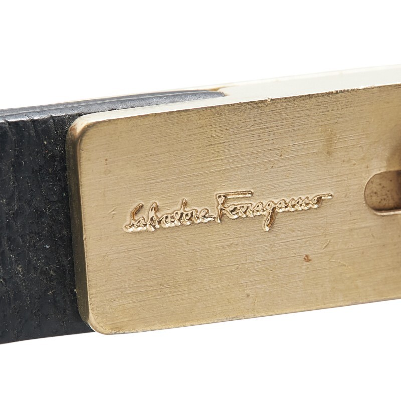 サルヴァトーレフェラガモ キーホルダー ゴールド ブラック メッキ レザー メンズ Salvatore Ferragamo 【中古】