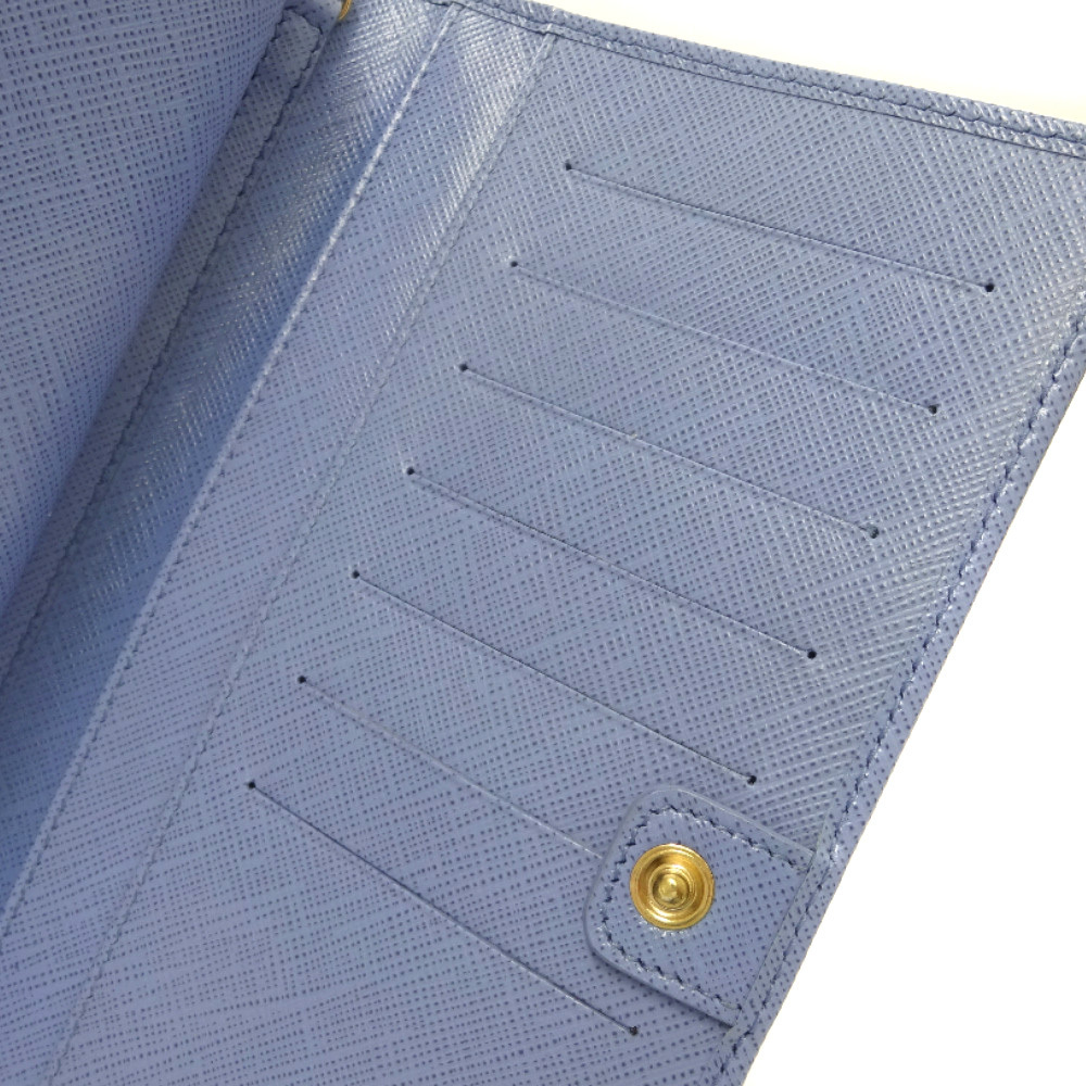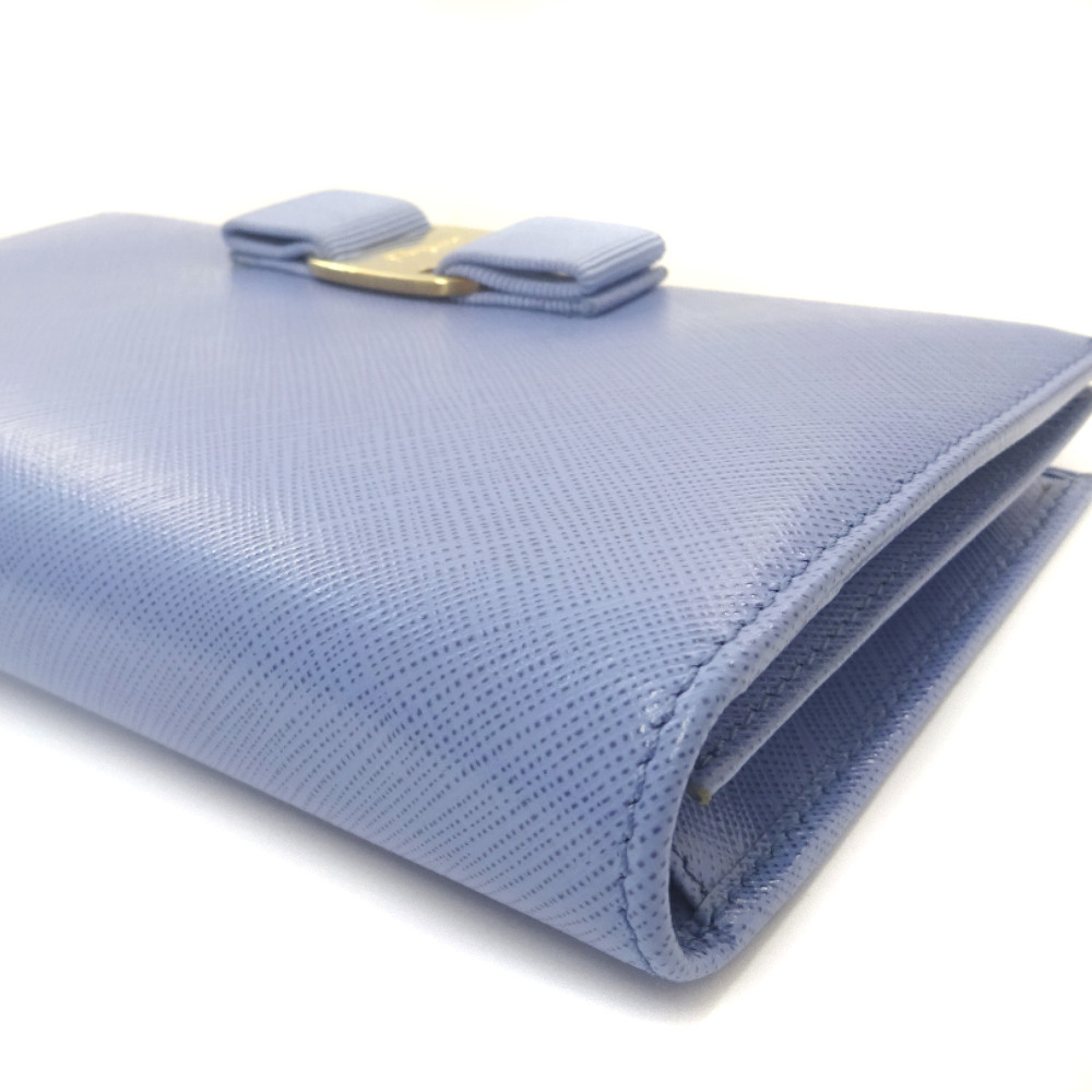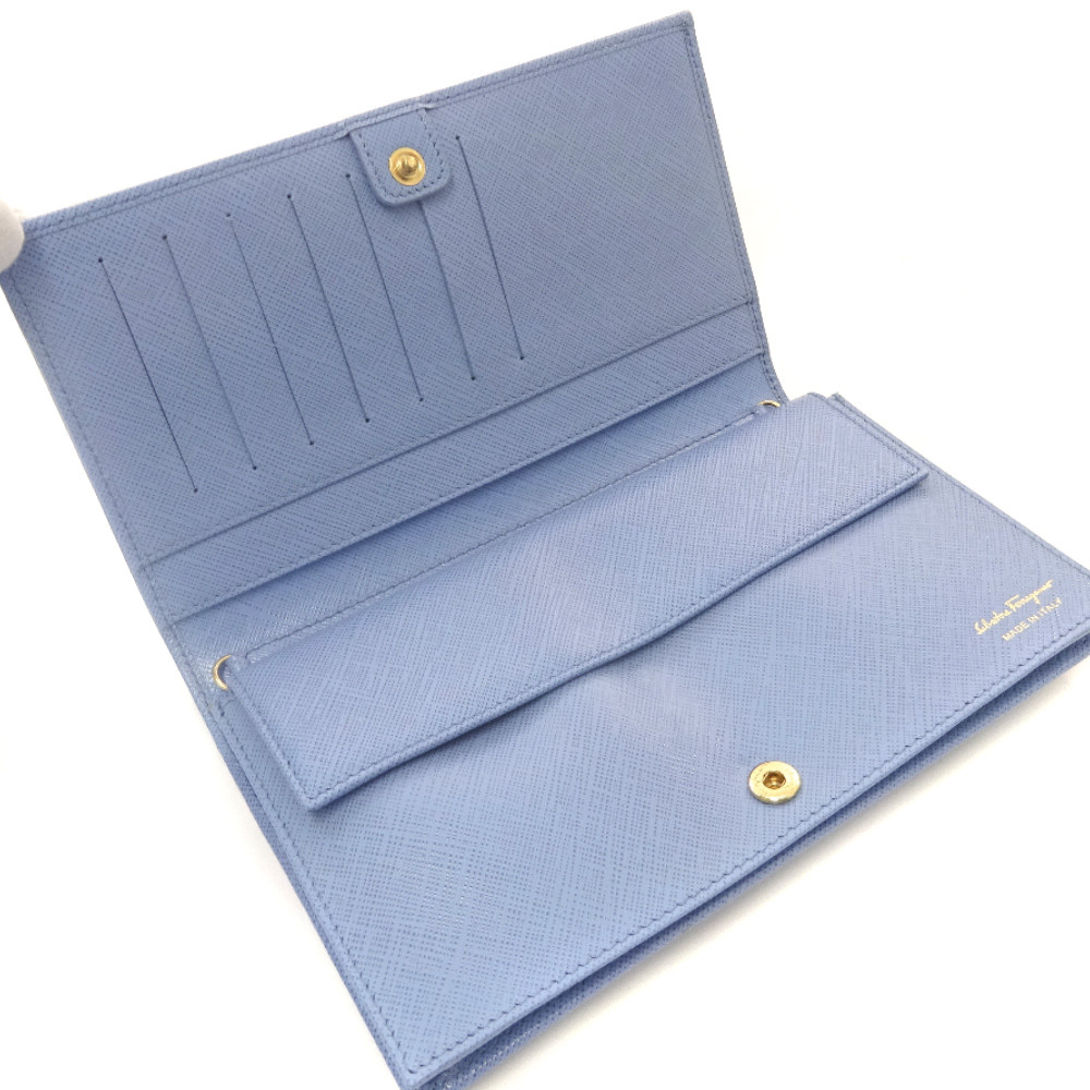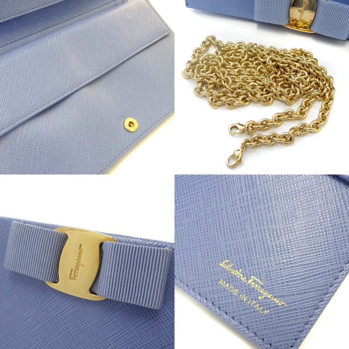 サルヴァトーレフェラガモ ヴァラリボン チェーンウォレット 長財布 レディース レザー ライトブルー 中古 送料無料 Salvatore Ferragamo