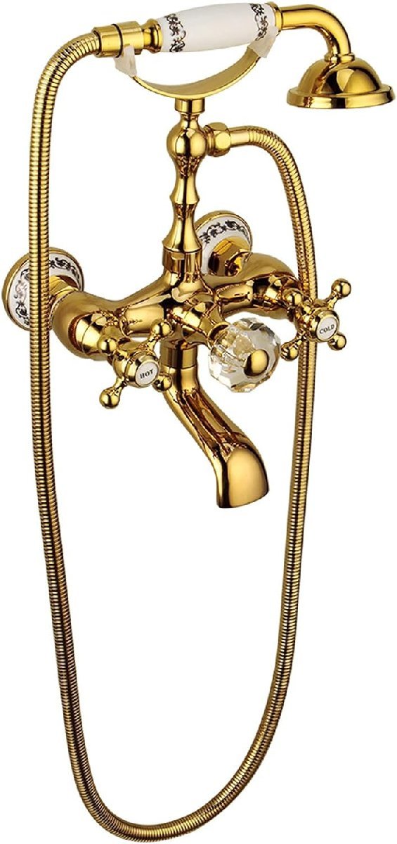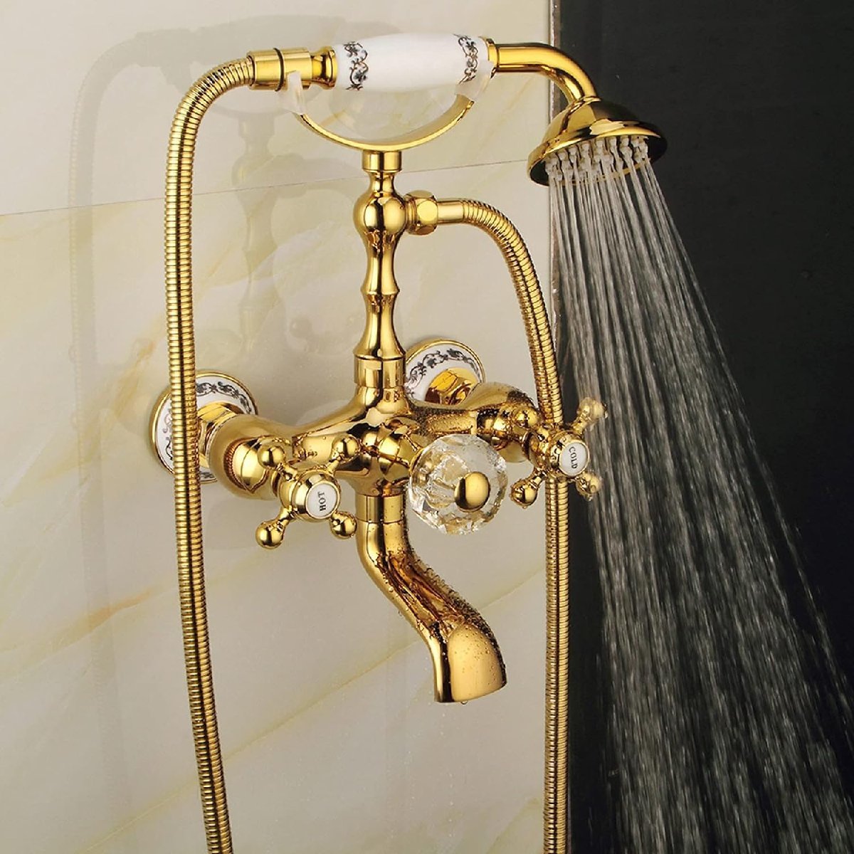 壁付け混合水栓ゴールド 浴室水栓ダブルハンドルシャワーバー 水栓金具付きハンドヘルドシャワー浴室の改修用