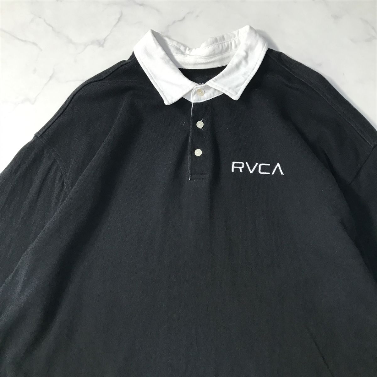 《オススメ◎》RVCA ルーカ★刺繍デザイン*ワンポイント*ポロシャツ*ブラック/ホワイト*サイズL(MS4113)◆S60