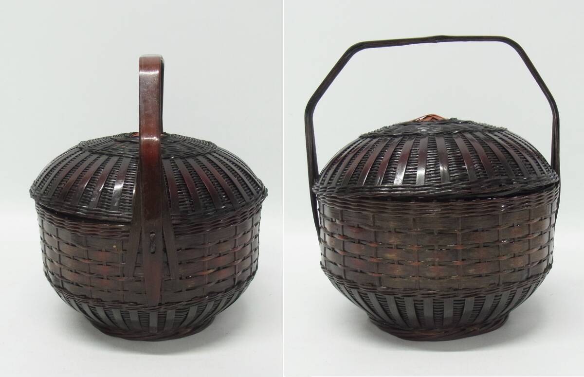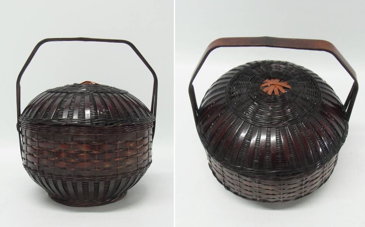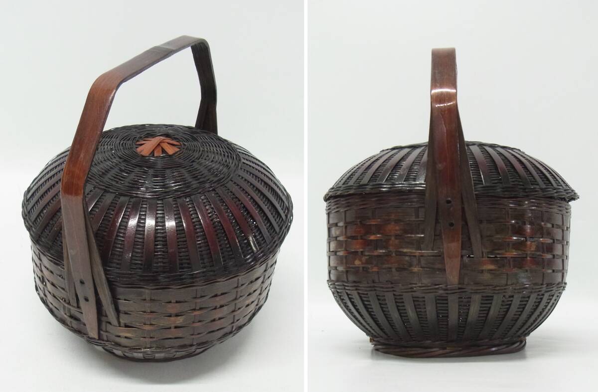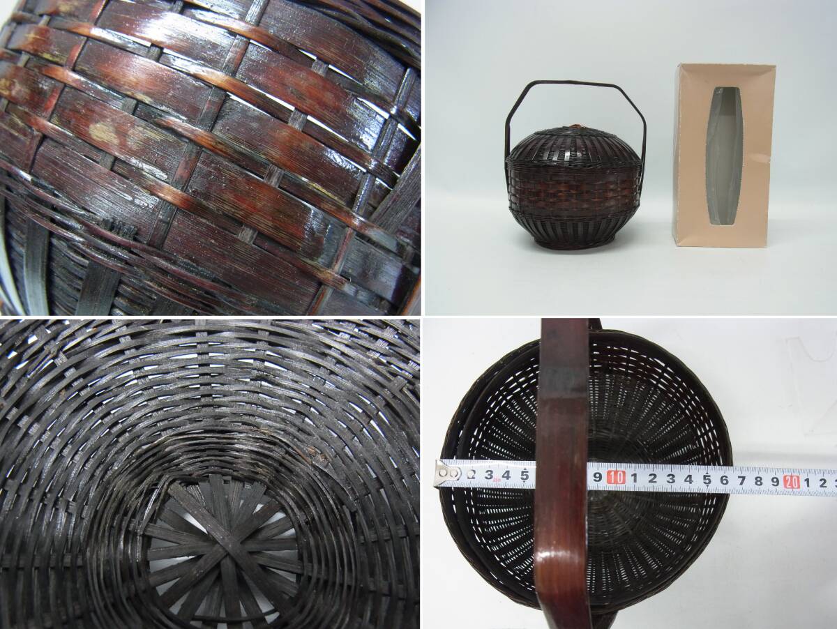 古い 蓋付 手付 竹編籠☆華道 茶道 竹籠 竹 カゴ 篭 籠 竹細工 古民具 茶室 インテリア 現状 80 | |||