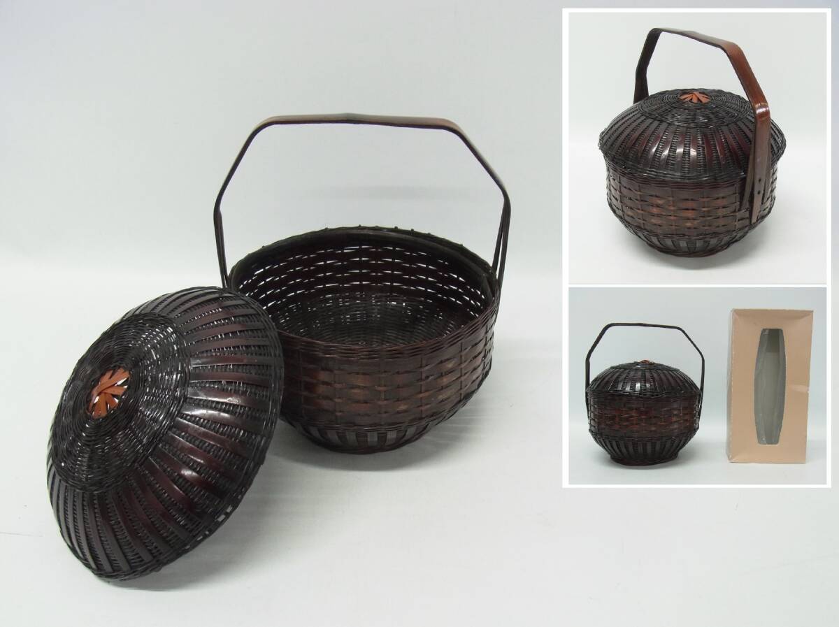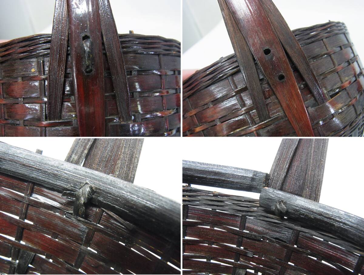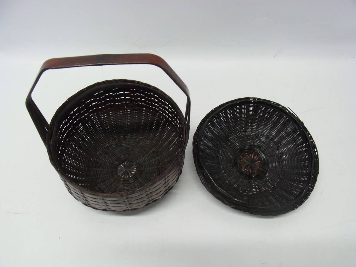 古い 蓋付 手付 竹編籠☆華道 茶道 竹籠 竹 カゴ 篭 籠 竹細工 古民具 茶室 インテリア 現状 80 | |||