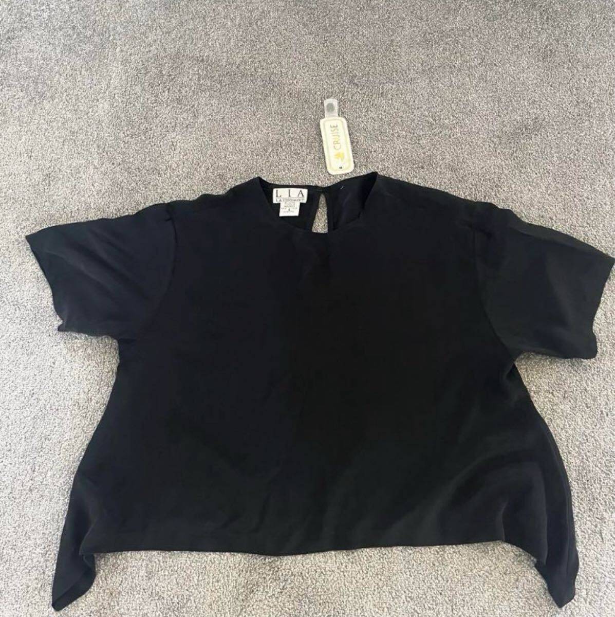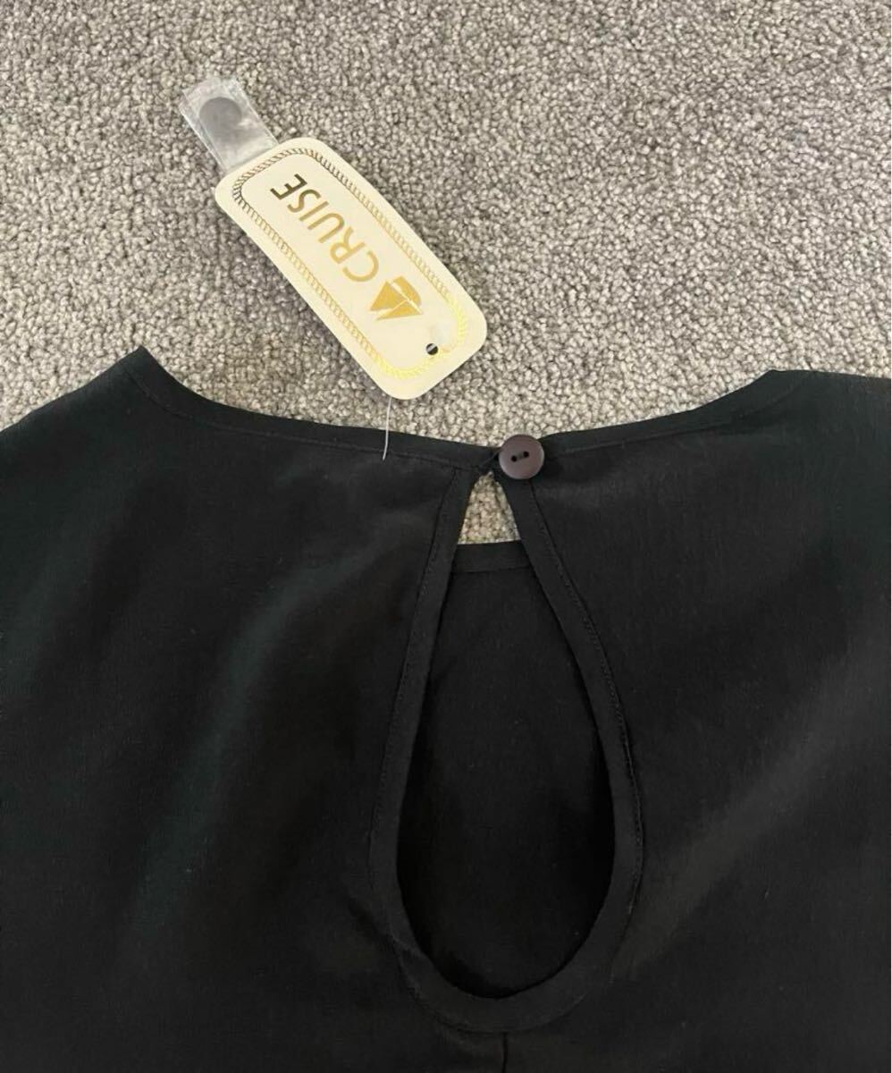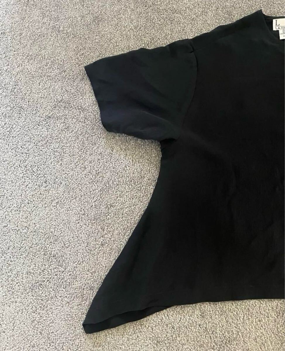 シンプルでエレガントな黒の半袖トップス。