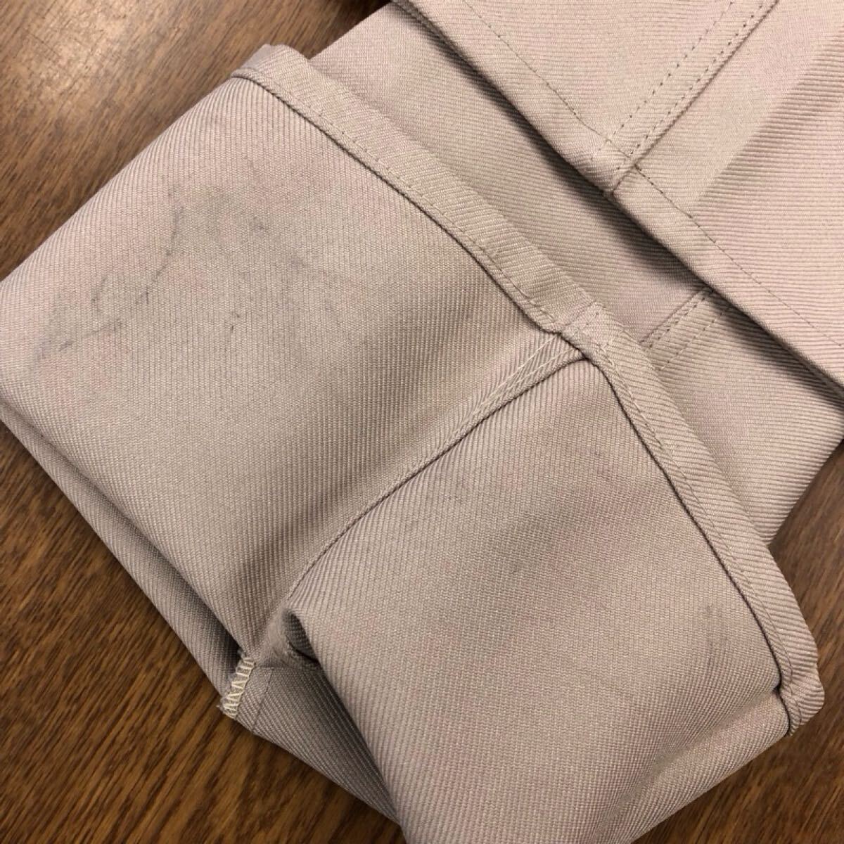 ●ウエスト→フロントボタンやジップは閉じ、ウエストの表中心と後ろ中心を合わせて机や床など平面な場所に置き、フラットに測れるよう生地を軽く手で押さえ、平置きしたパンツの左右端の最上部を計測、実寸した数値×2の表記をしてます。