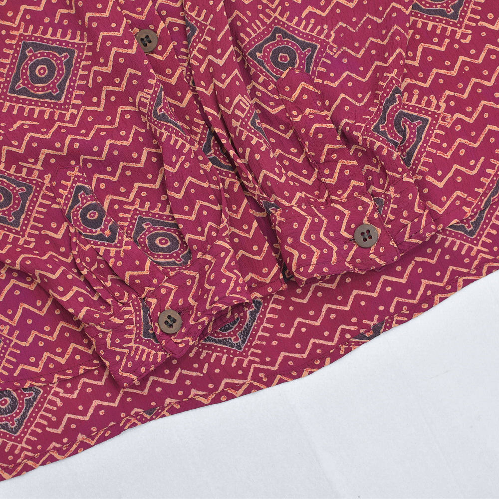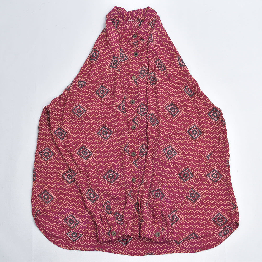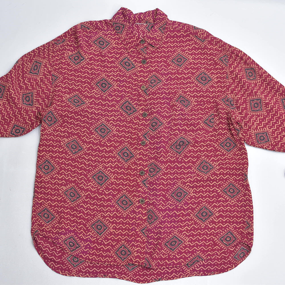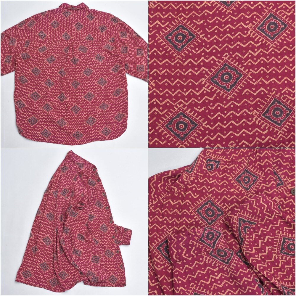 90~00s Trival patternトライバル柄 幾何学模様 総柄 ポリエステルシャツ ヴィンテージ 長袖 ビンテージ USA アメリカ古着 レディースXXL相当