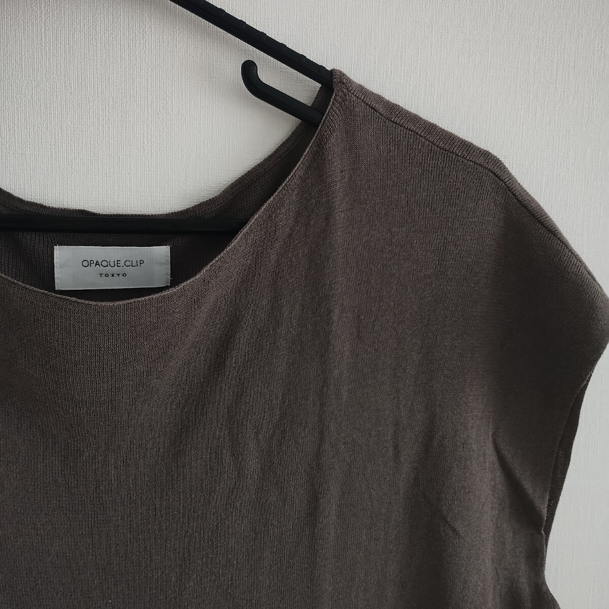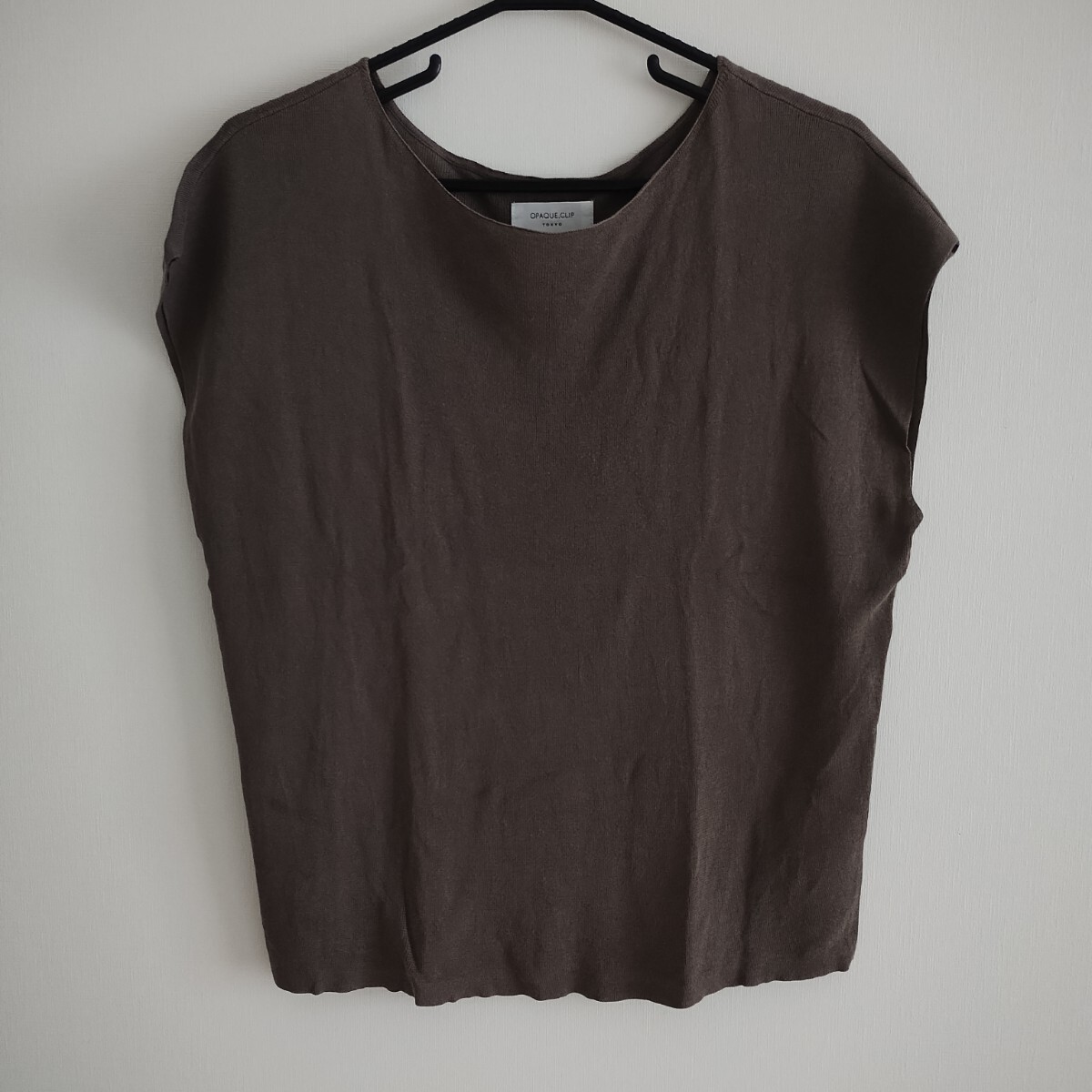 Opaque.Clipの女性用シンプルなカーキ、薄焦げ茶のノースリーブトップス。