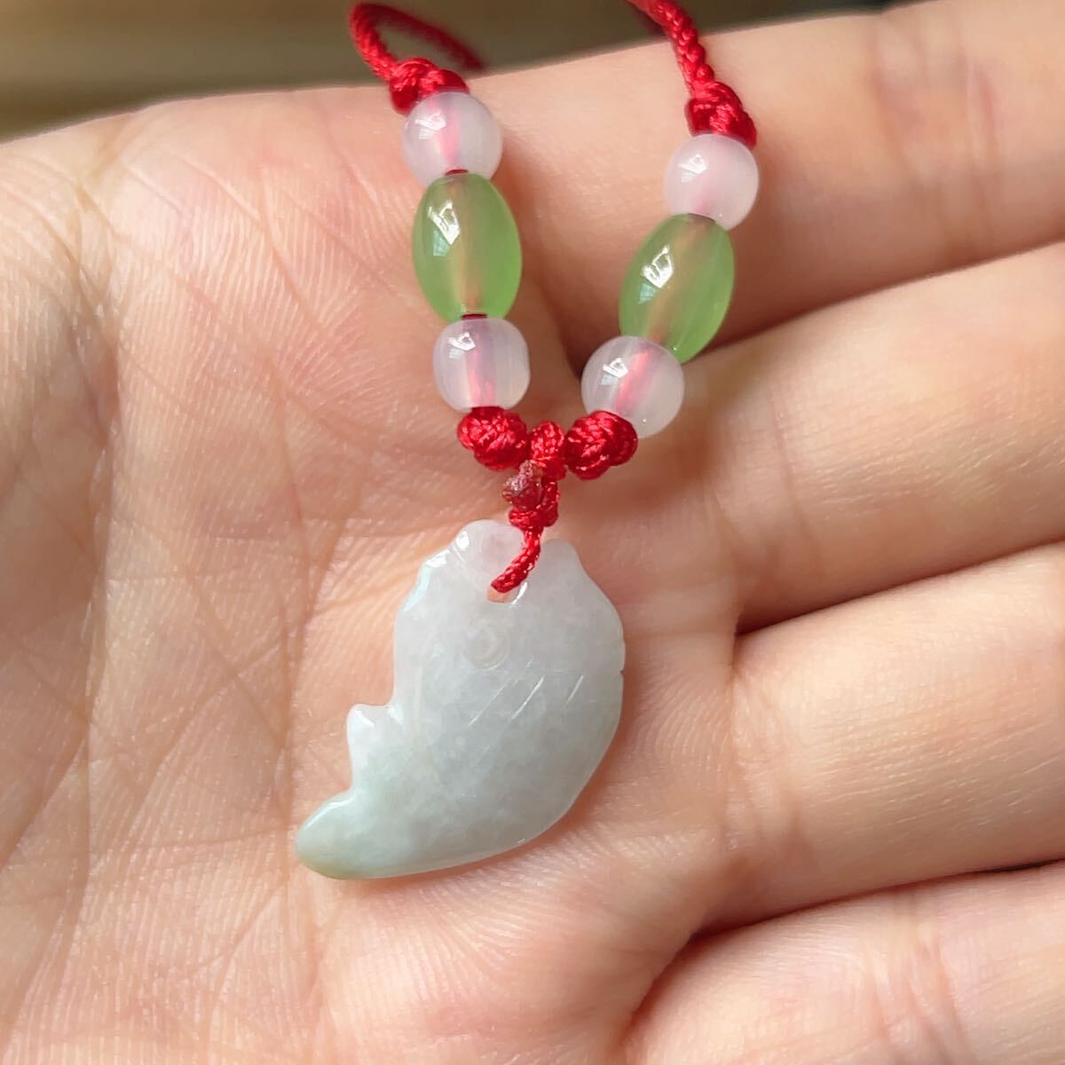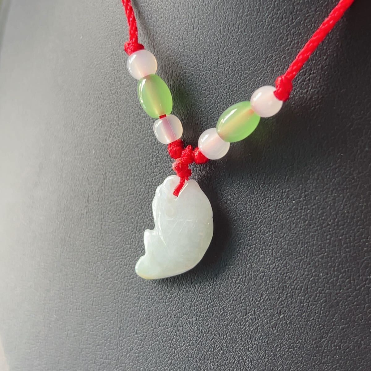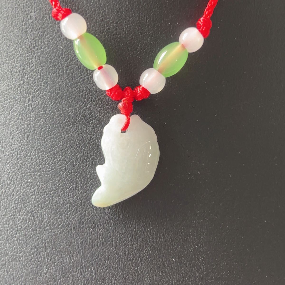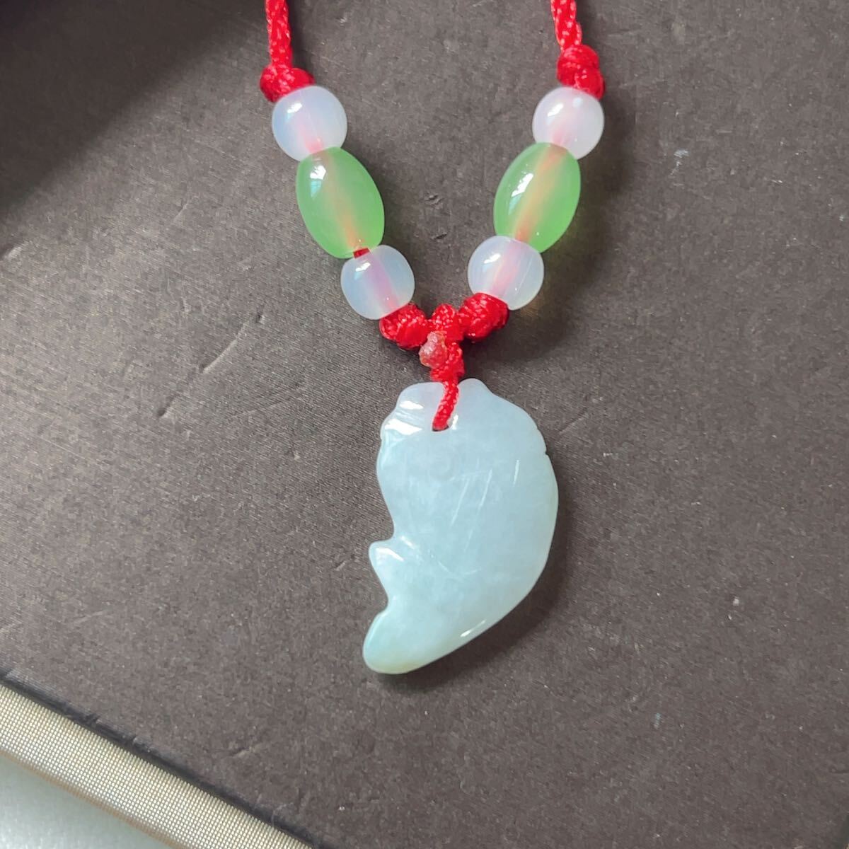 ◇ジェイド(本翡翠)+人工石◇ヒスイ◇ネックレス◇魚形 彫刻◇天然石◇パワーストーン◇巾着袋付き◇プレゼントにも 031P6157