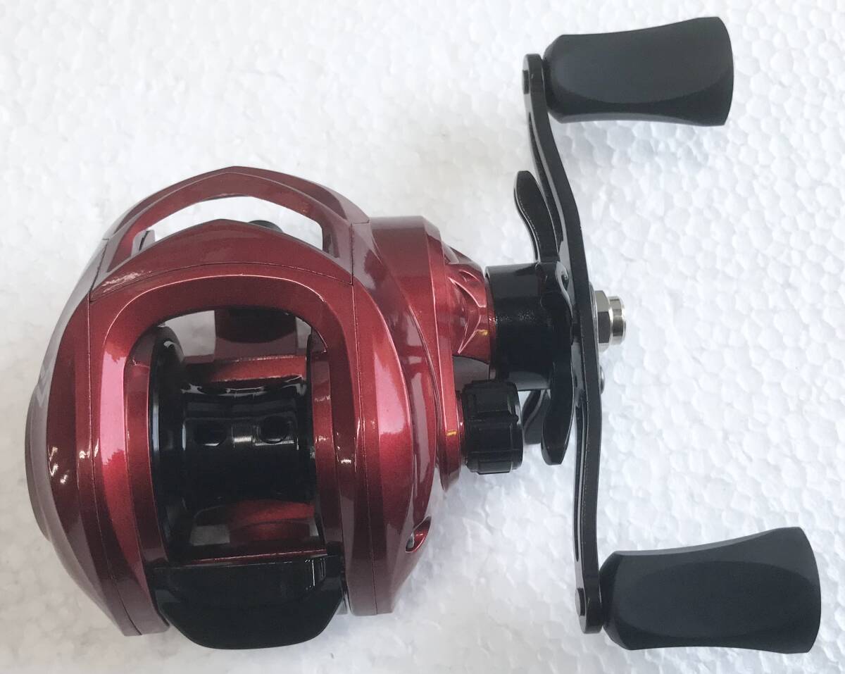 写真のSOUGAYILANGベイトキャスティングリール LP200ワインレッドメタリック右ハンドル(新品未使用)を発送します(送料無料)。