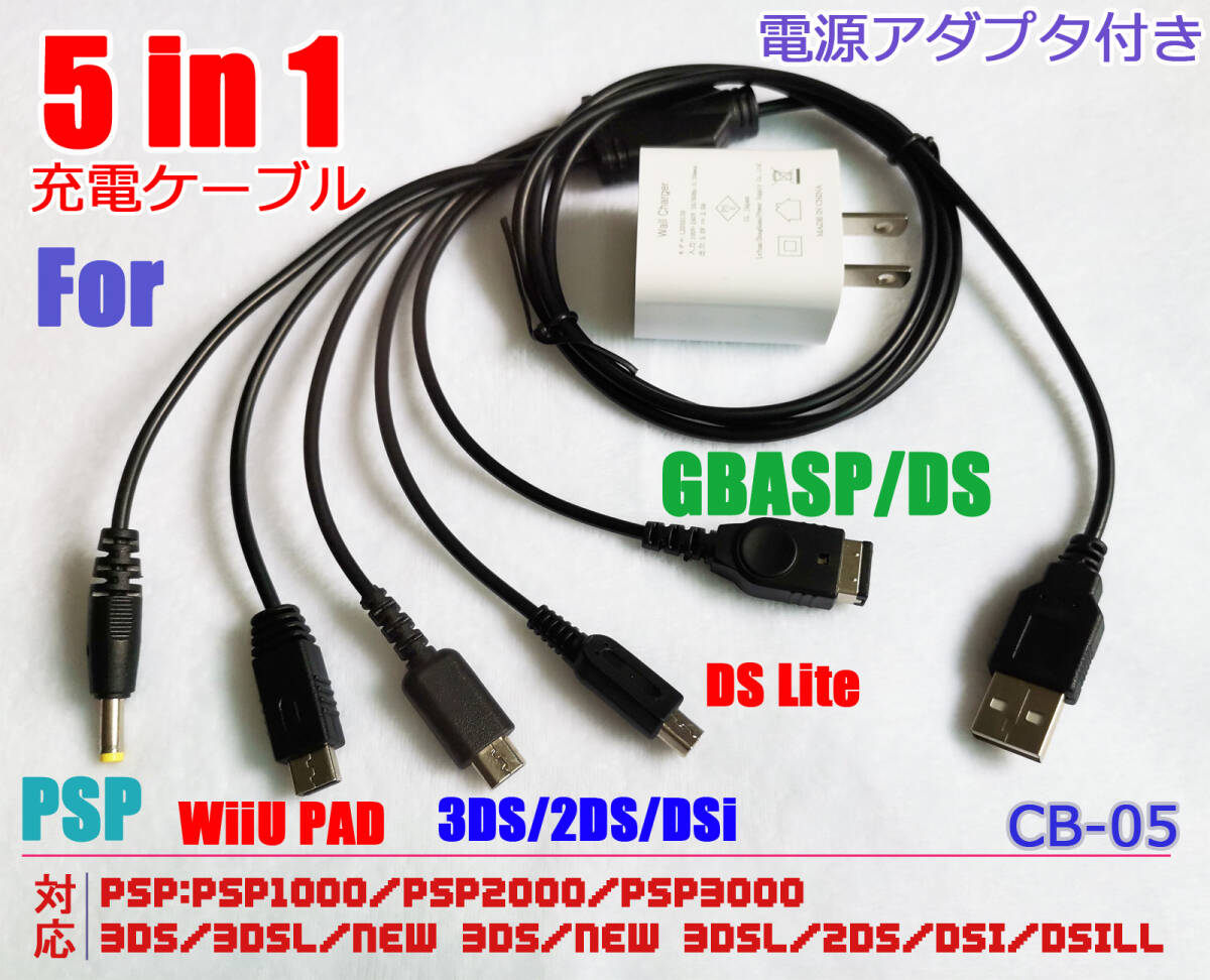 5in1 wiiupad PSP 3DSLL DSI GBASP DSLITE USB充電ケーブル アダプタ付き