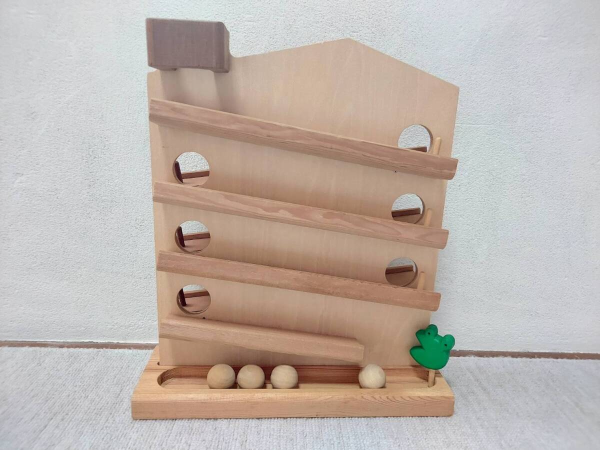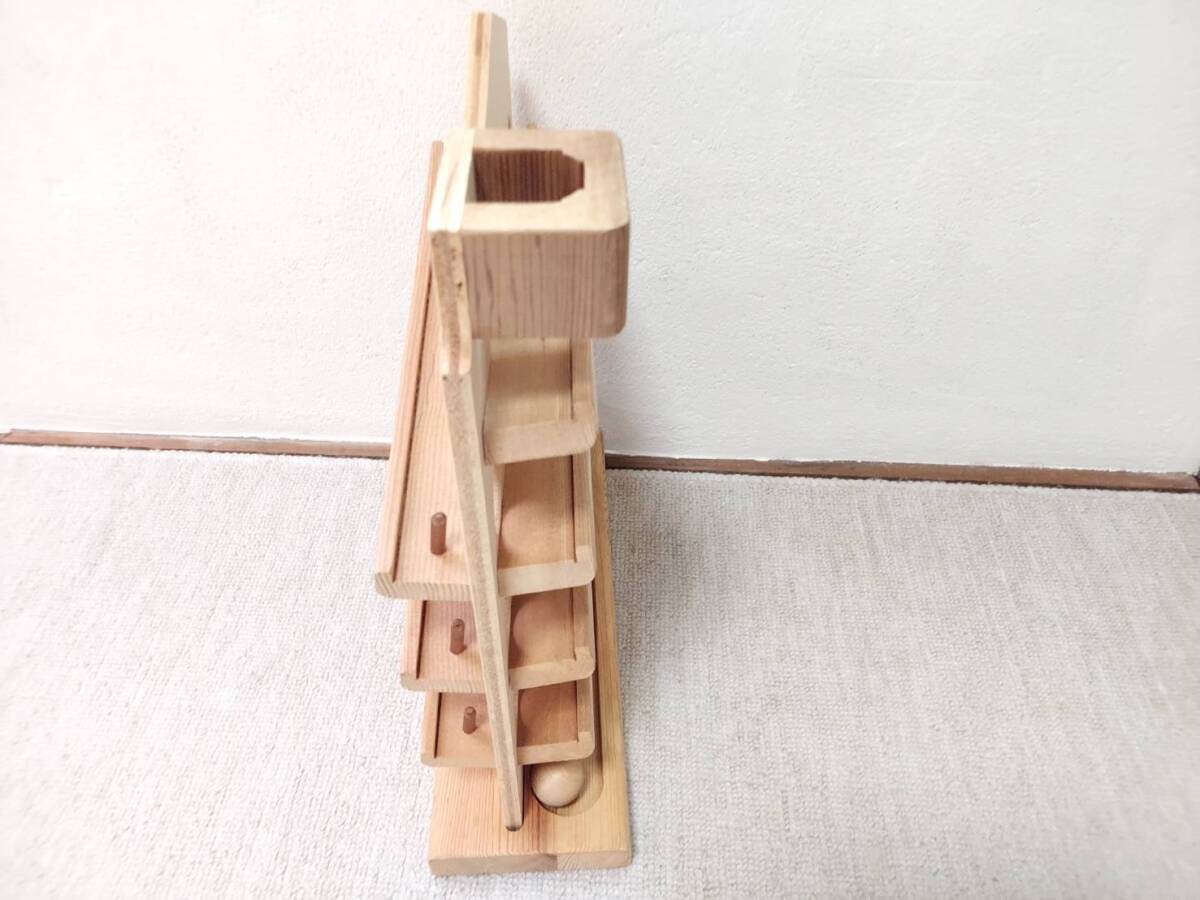 USED☆木製 家形 玉転がし ボール転がし 坂転がし コロコロコースター 木のおもおちゃ キットにて組み立て済み