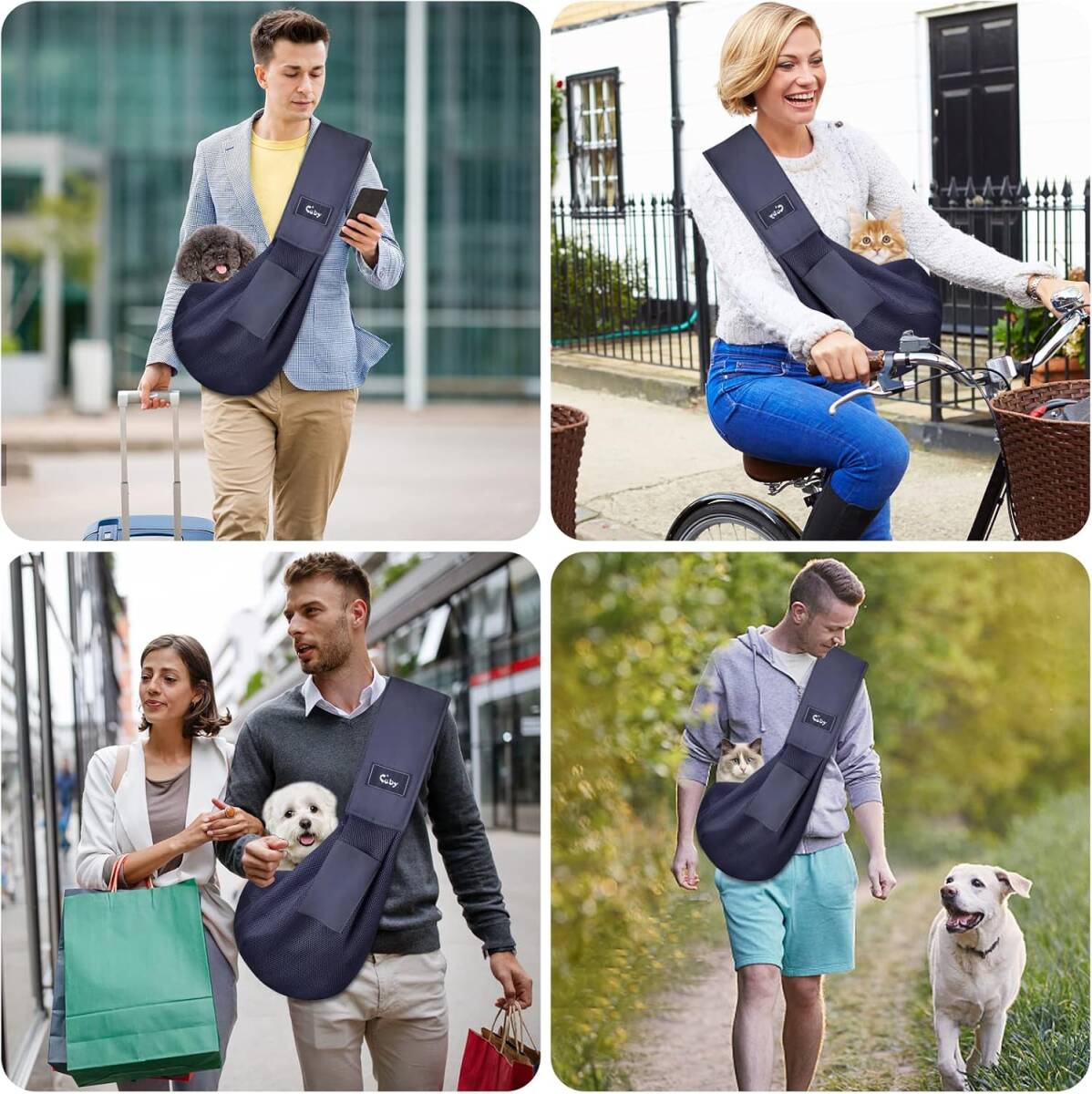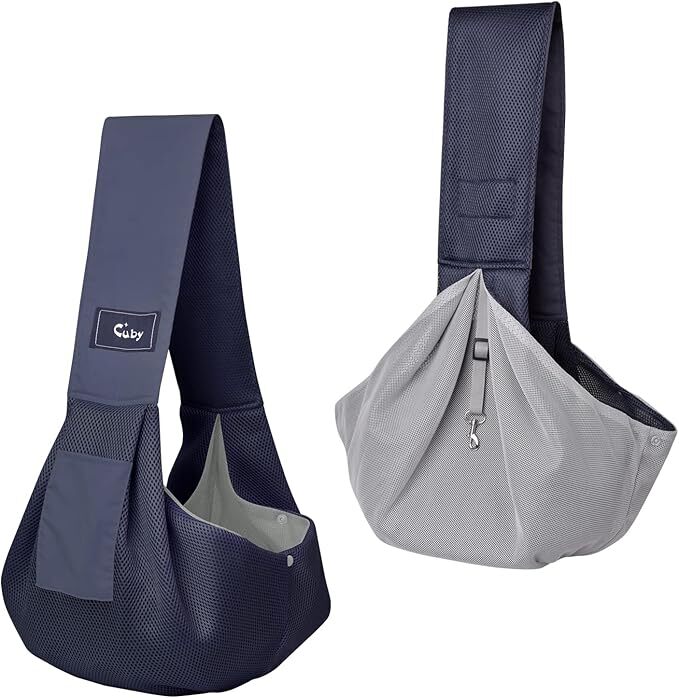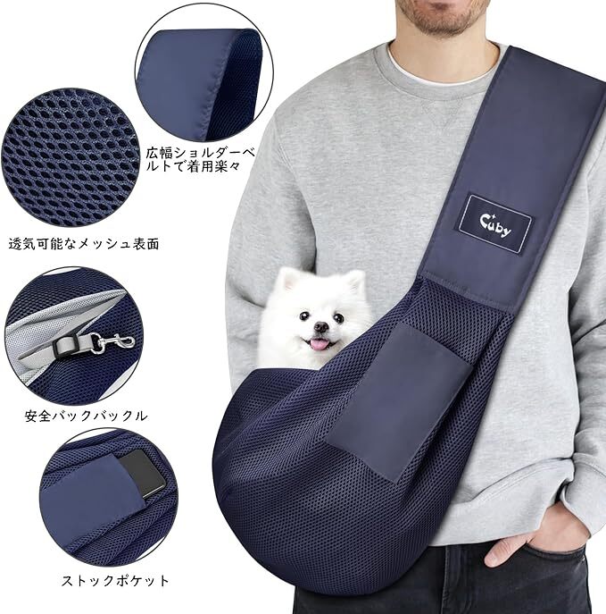 Cuby ペットスリング 犬 抱っこ紐 犬猫兼用スリングキャリア ペットバッグ小型犬 飛び出し防止 夏用 小型犬 通気性メッシュネット付き 長さ調節可能 6キロまで対応(青) 0612