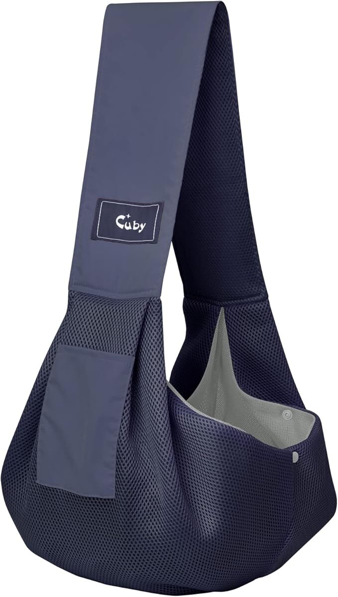 Cuby ペットスリング 犬 抱っこ紐 犬猫兼用スリングキャリア ペットバッグ小型犬 飛び出し防止 夏用 小型犬 通気性メッシュ(青) 0612