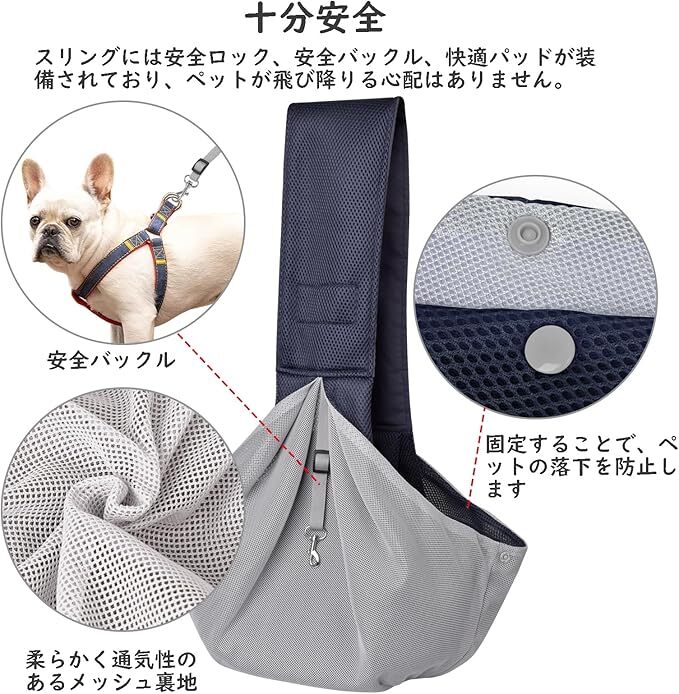 安全で便利:フックとペットの首輪を繋げれ、ペットが飛び出すのを防ぎます。犬抱っこ紐にはメッシュネット付き、安全性を高めています。