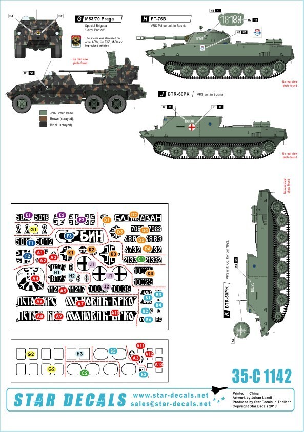 スターデカール 35-C1142 1/35 ボスニア紛争のAFV #7 セルビア人のM18ヘルキャット, M36B2ジャクソン, M84, PT-76B, BTR-50PK, M53/59ブラガ