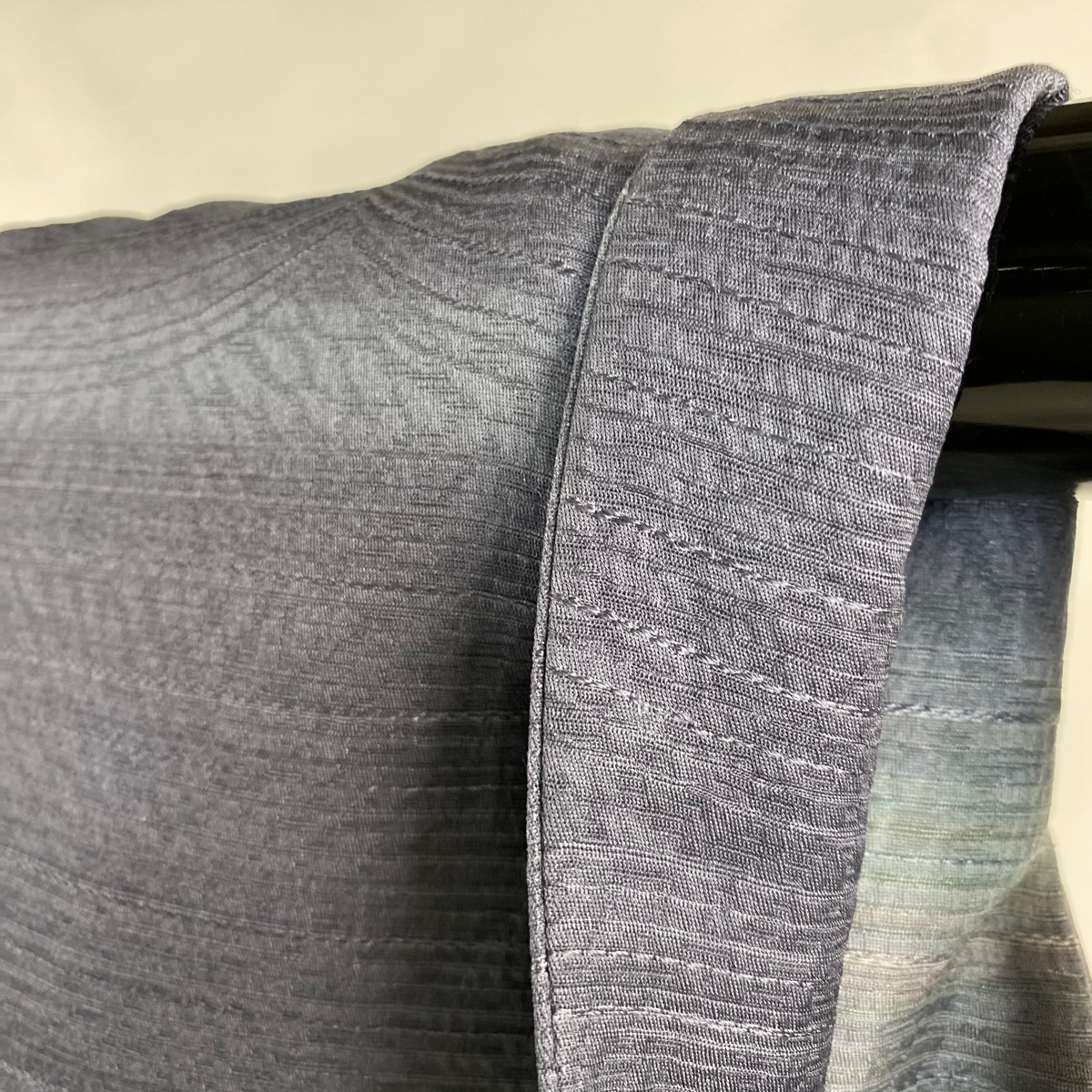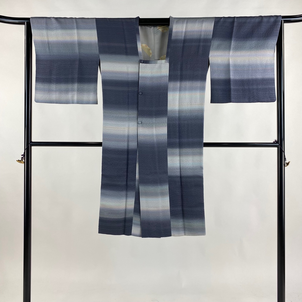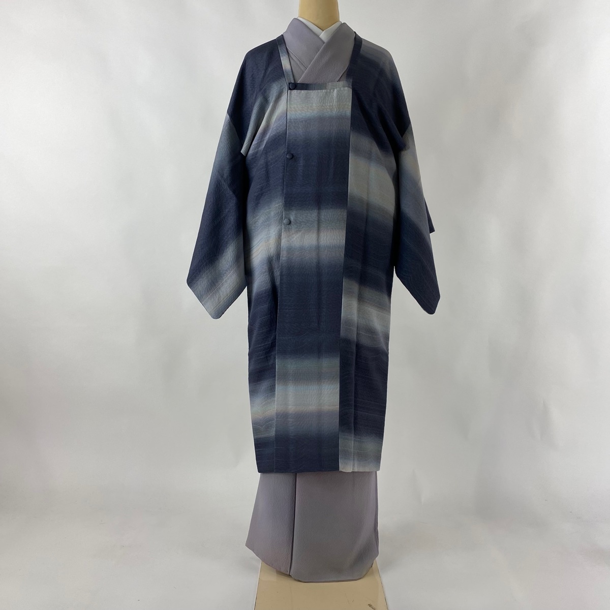 | 道行 美品 逸品 和装コート 角衿 地紋 段ぼかし 青灰色 身丈111 裄丈66 M 正絹 【中古】 |