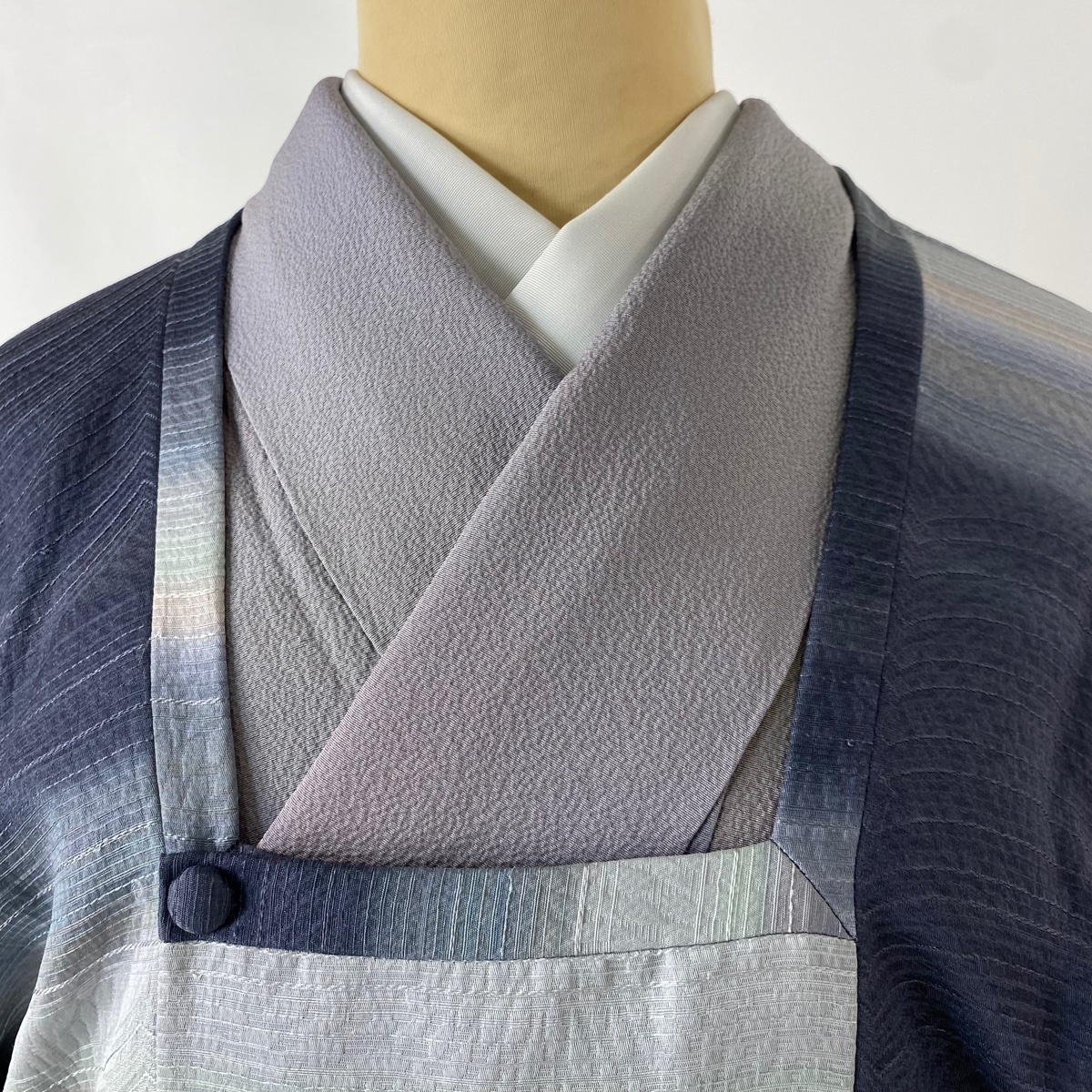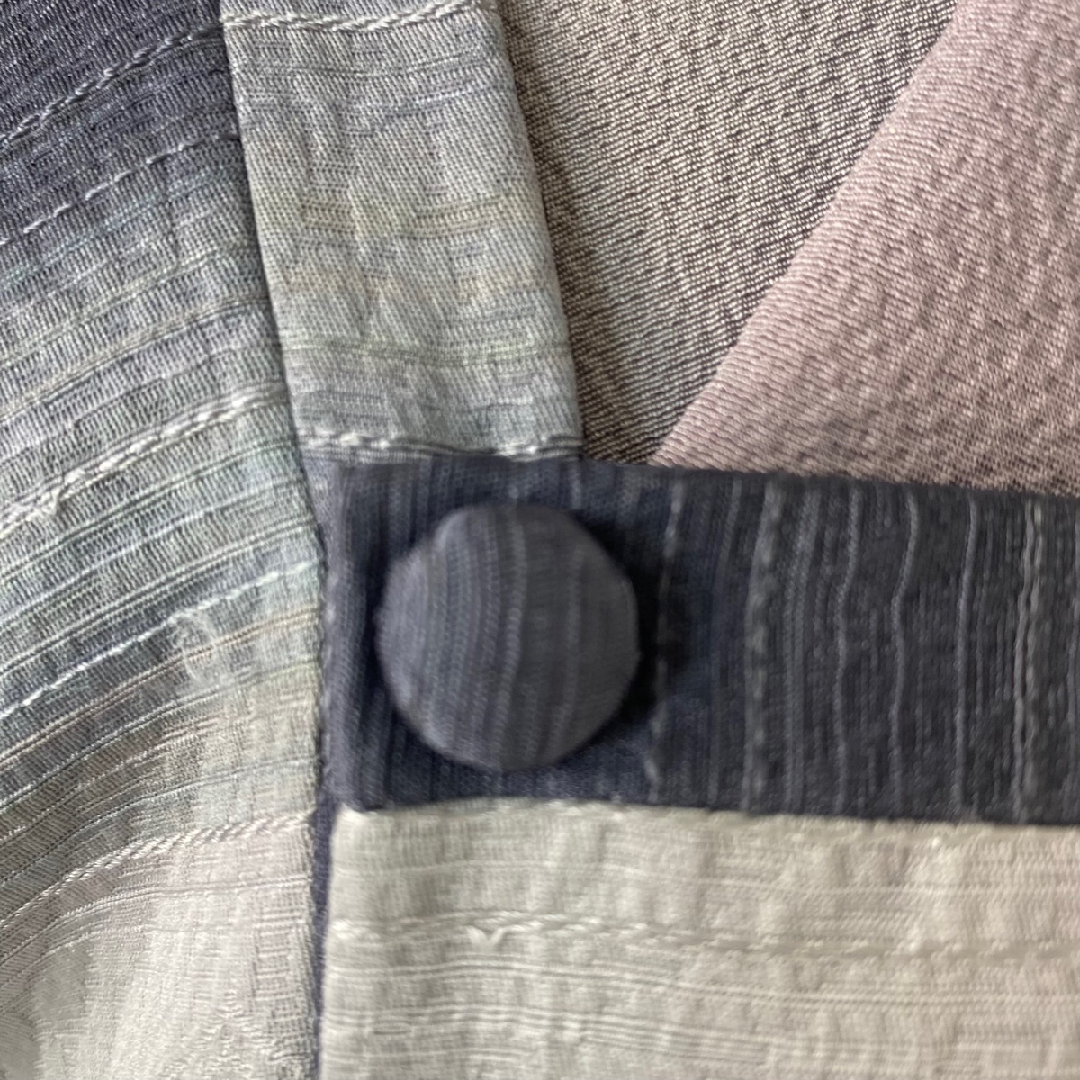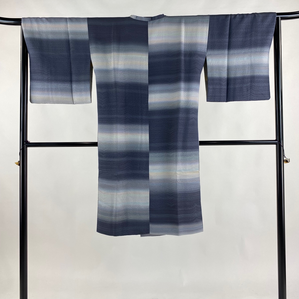 | 道行 美品 逸品 和装コート 角衿 地紋 段ぼかし 青灰色 身丈111 裄丈66 M 正絹 【中古】 |