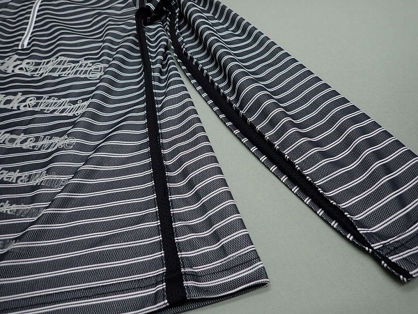 | Black&White ブラックアンドホワイトのハーフジップシャツです。フロント下部にフェルトプリントが入るデザインです。素敵にお使い頂けると思います。気になる方は是非ご検討下さい。 | |