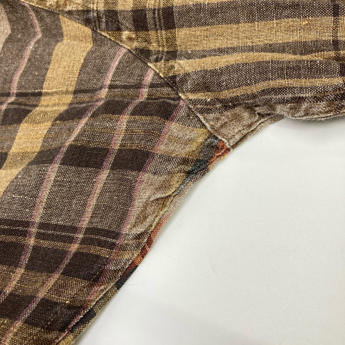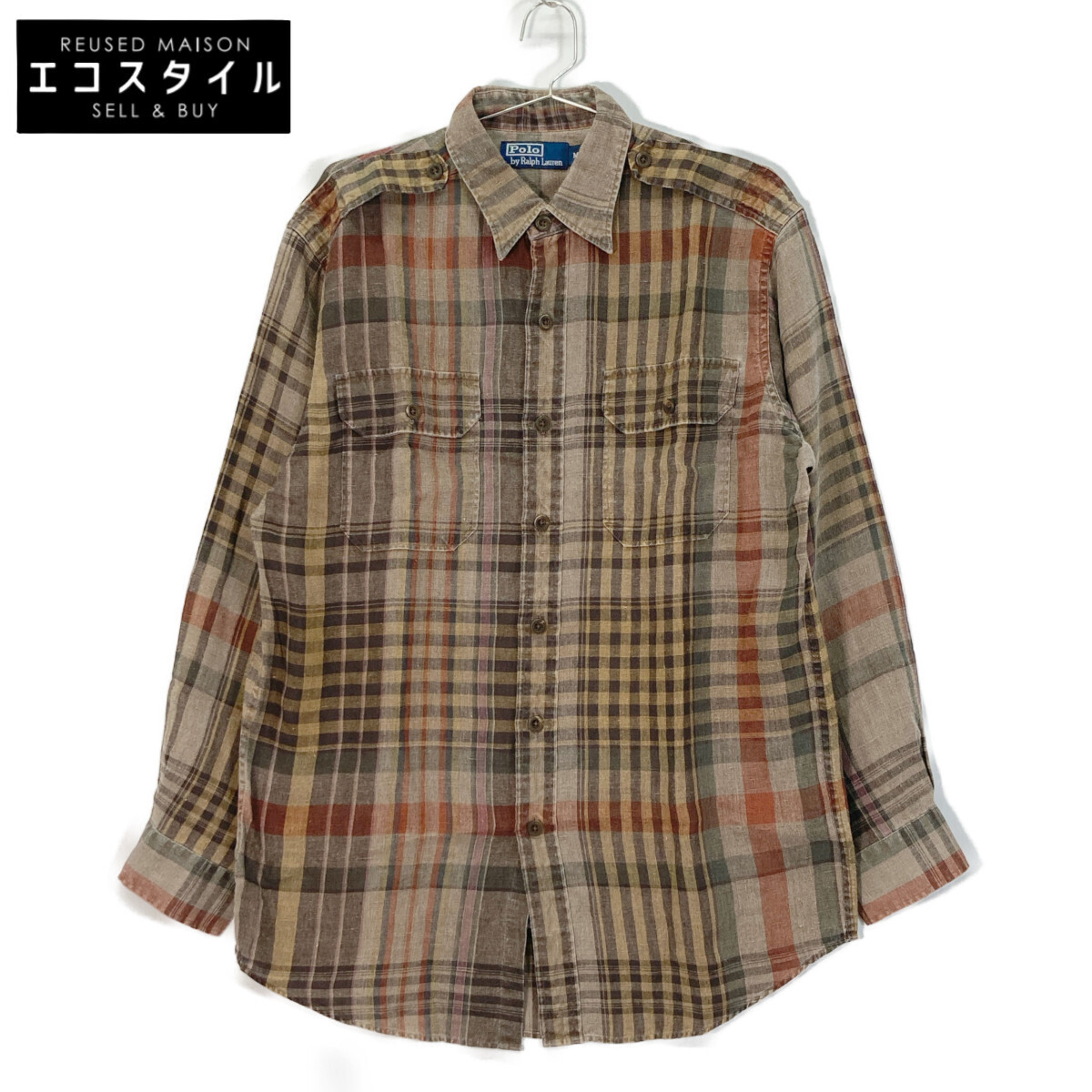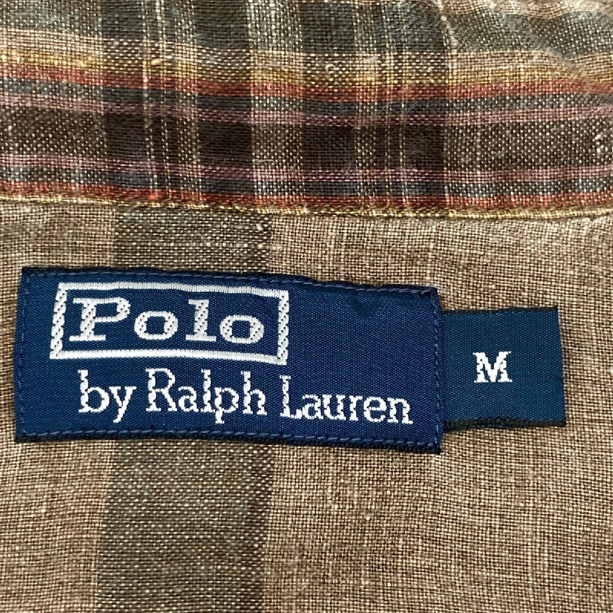 商品名 ポロ ラルフローレン ブラウン リネン100 チェック 長袖シャツトップス