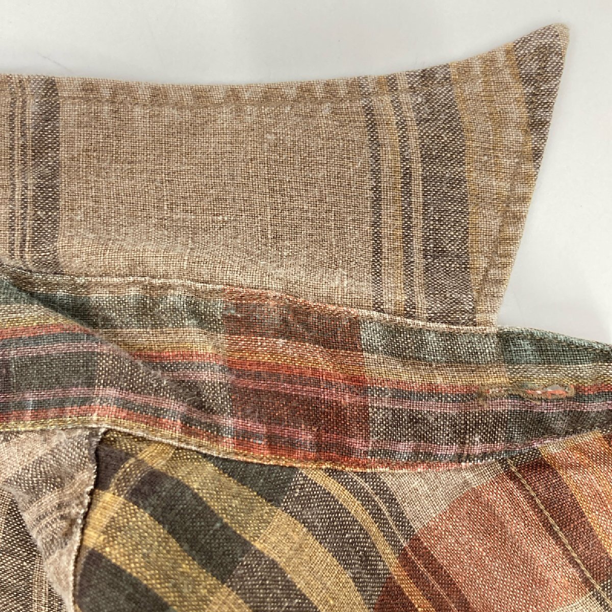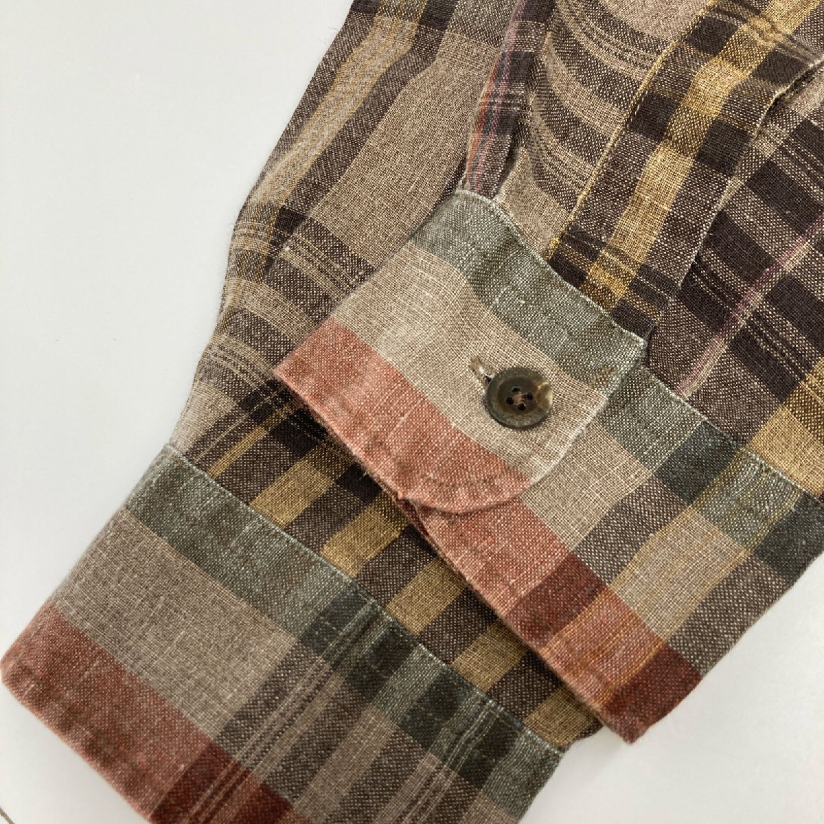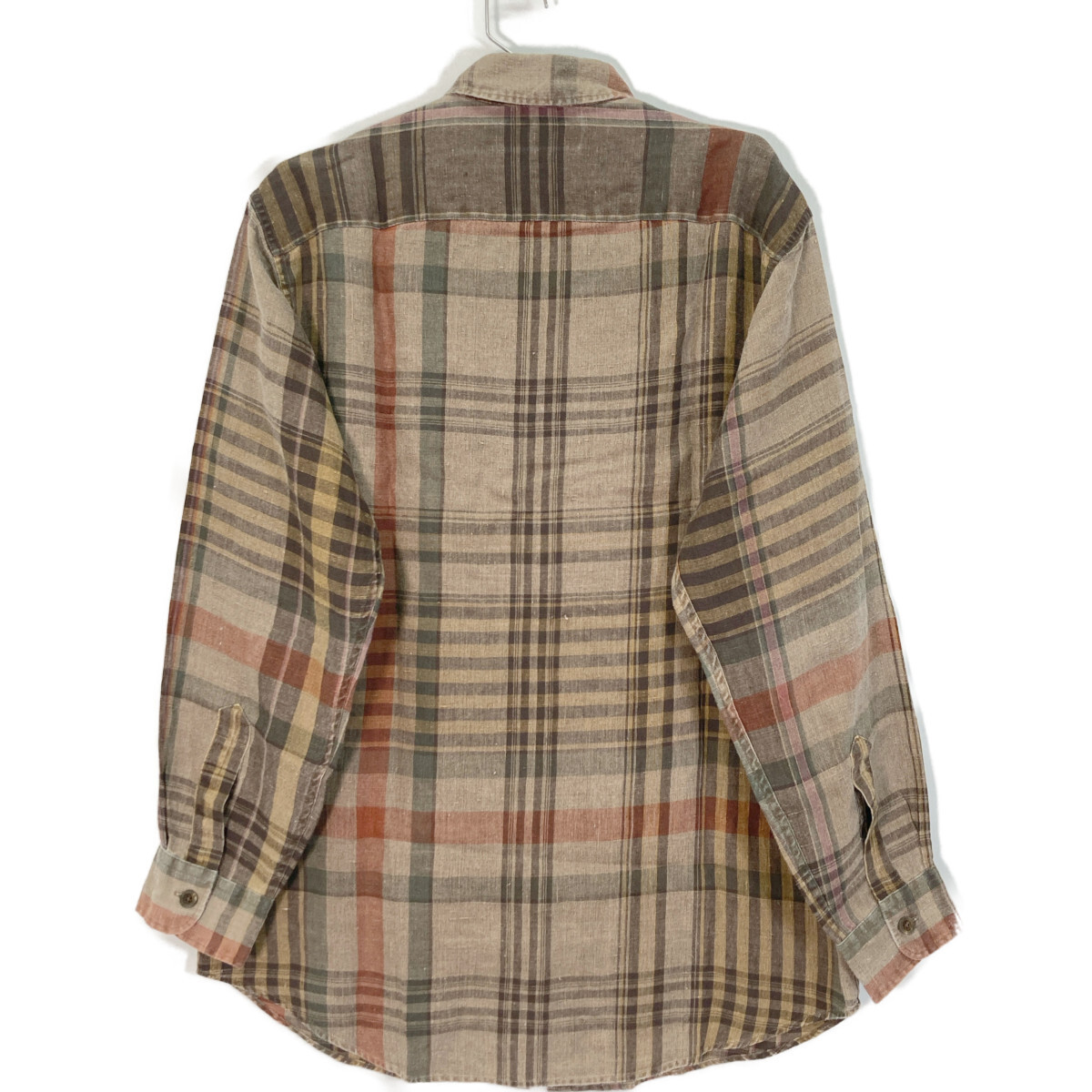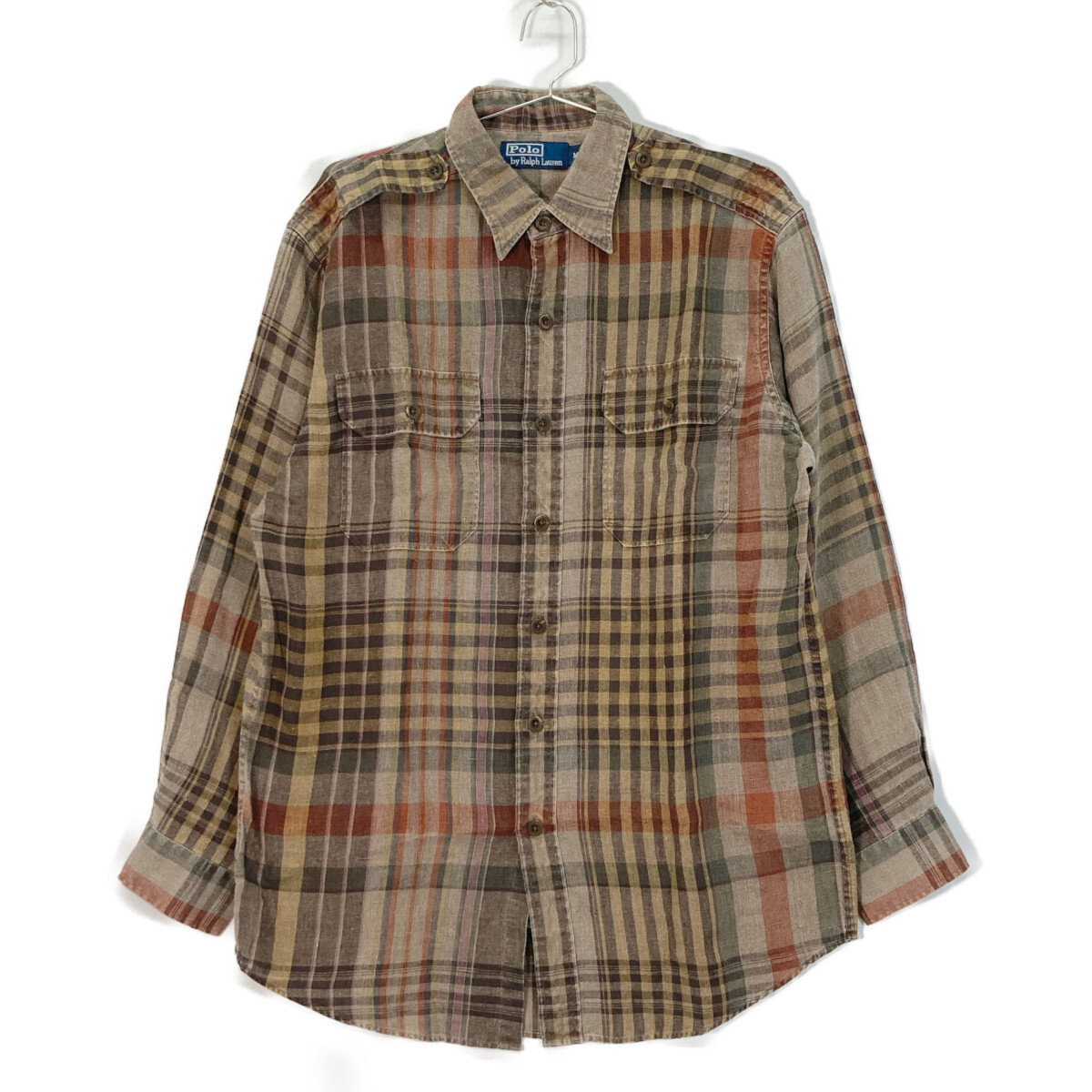 POLO RALPH LAUREN ポロ ラルフローレン ブラウン リネン100 チェック 長袖シャツ ブラウン M トップス リネン メンズ 中古