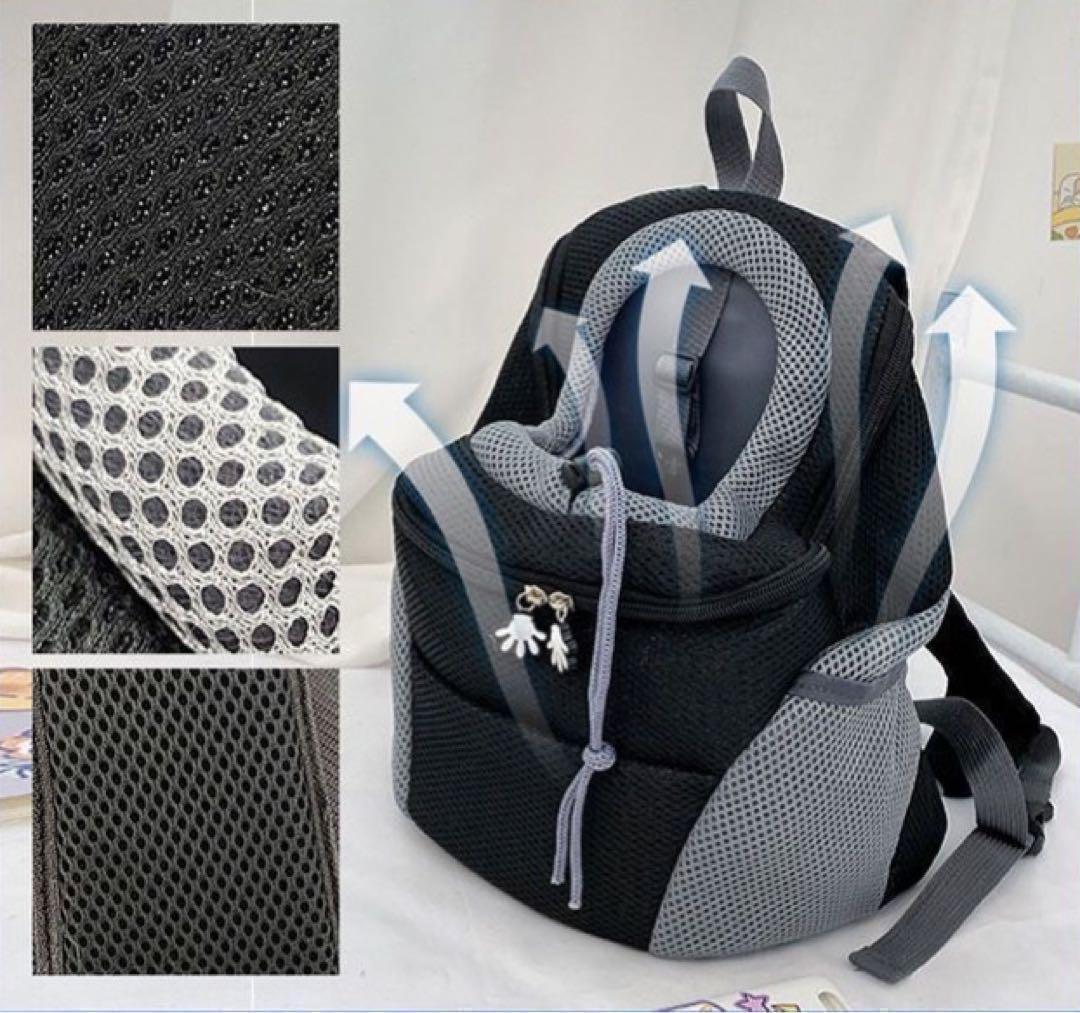 飛び出し防止機能、ストラップが付いたペット用キャリーバッグ になります。
