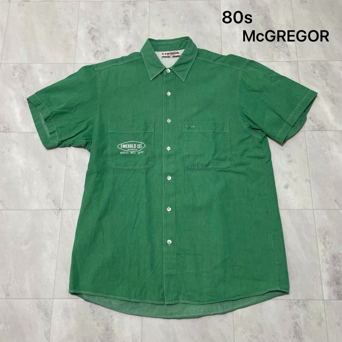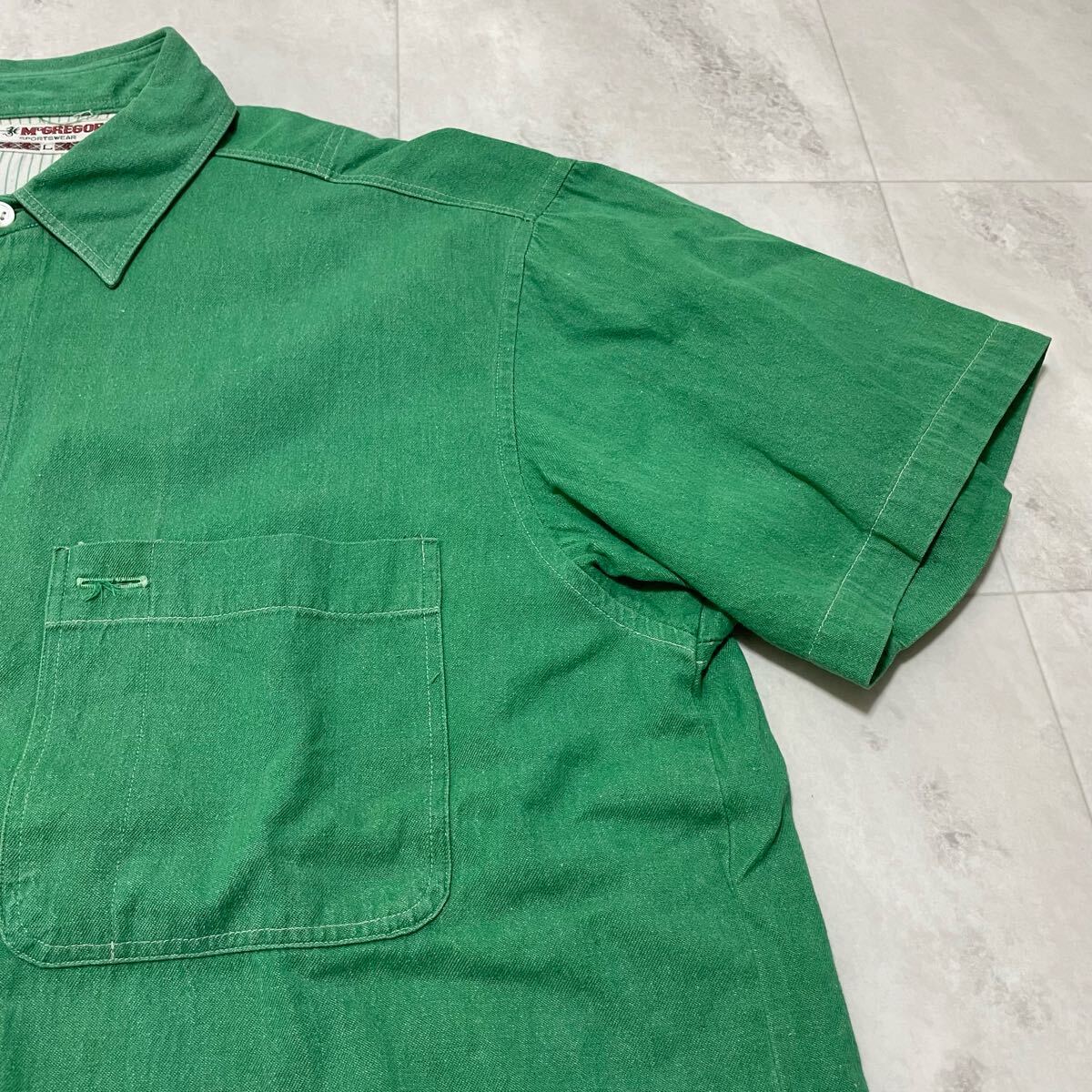 80s McGREGOR マックレガー タツノオトシゴ 半袖シャツ ワークシャツ 胸ポケット ヴィンテージ グリーン サイズL 玉SS3645