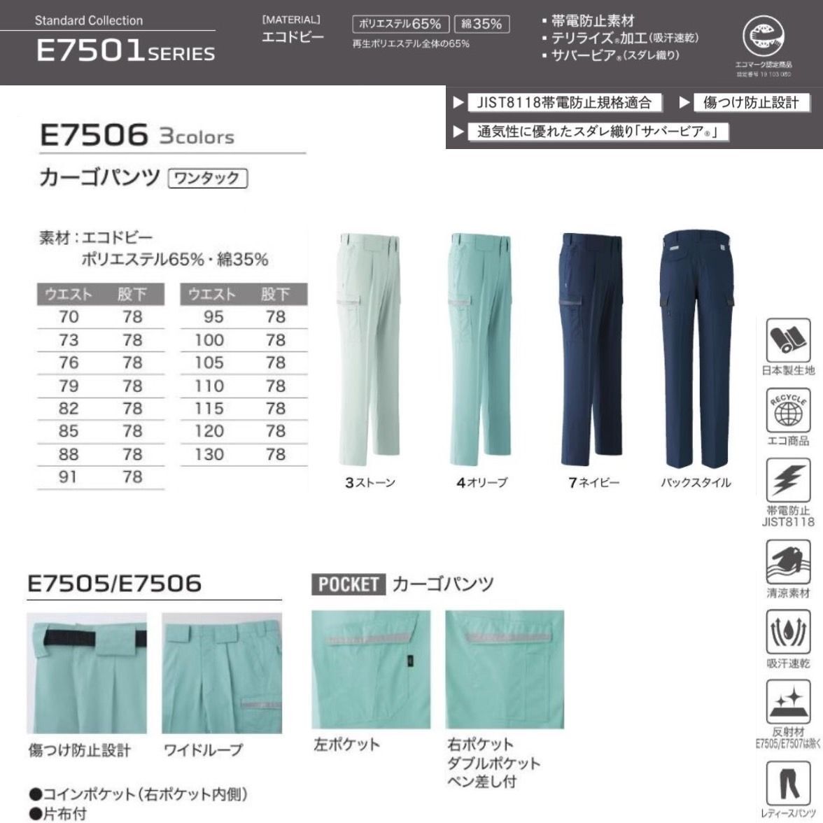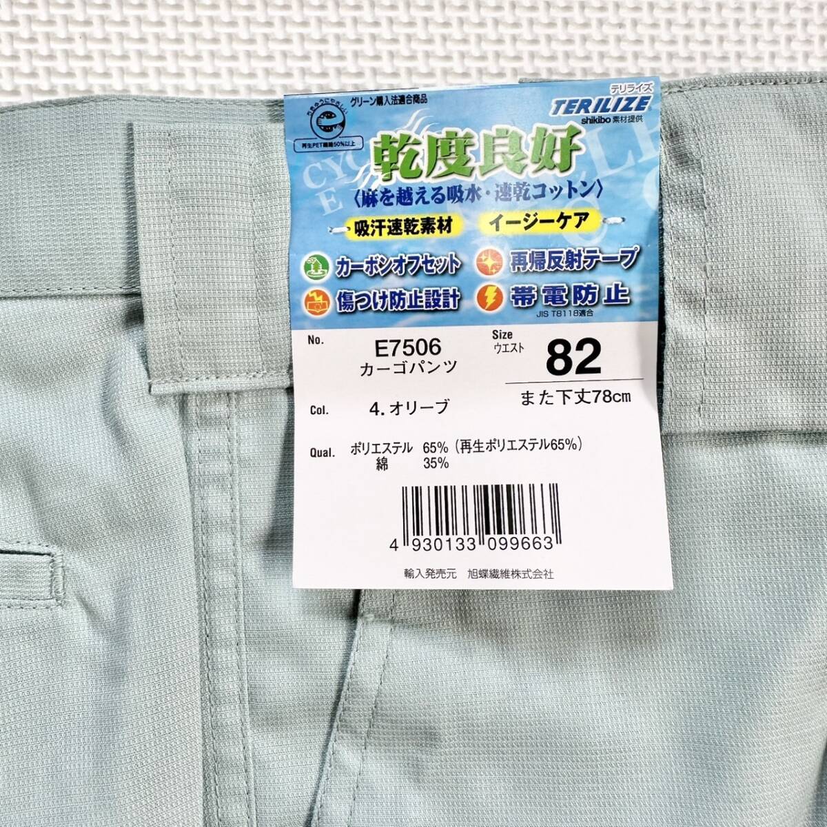 (新品未使用品) 旭蝶 [E7506] カーゴパンツ サイズ W82×L78 /オリーブ/春夏/薄手/速乾/帯電防止/ワンタック/作業着/ズボン/ワークウェア