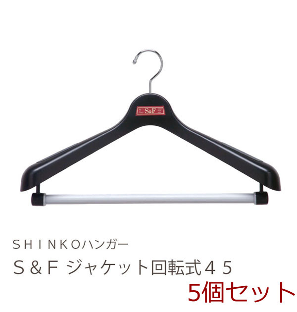 S&F ジャケット回転式45 ブラック ・スーツ・ジャケットハンガーの。 ・回転式のバーで、取り出す際はスラックスを引っ張るだけ。 ・両肩にすべり止めラバーが付いています。 ・肩幅も40・45・50cmと3サイズ揃っているので、ご自分に合うサイズをご購入いただけます。 生産地 日本 サイズ 商品サイズ(約):肩幅450mm×高さ270mm×厚さ52mm 素材 本体・回転コマ:ポリプロピレン バー受け:ABS樹脂 フック:鉄・クロームメッキ 回転ストップバー:再生スチロール・ラバー加工 すべり止め:改質合成ゴム ブランド シンコーハンガー |